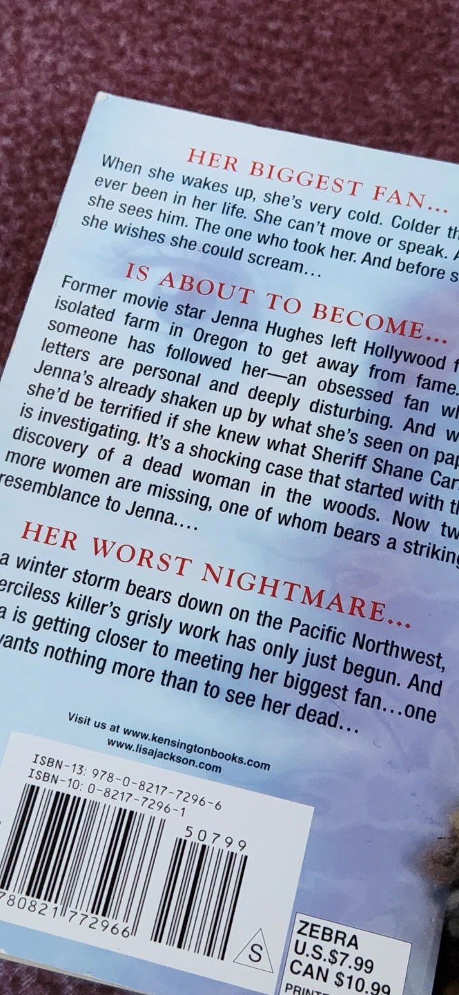 This is Lisa Jackson's "Deep Freeze" paperback novel. It's a New York Times bestseller. The book features a chilling mystery set in the Pacific Northwest.