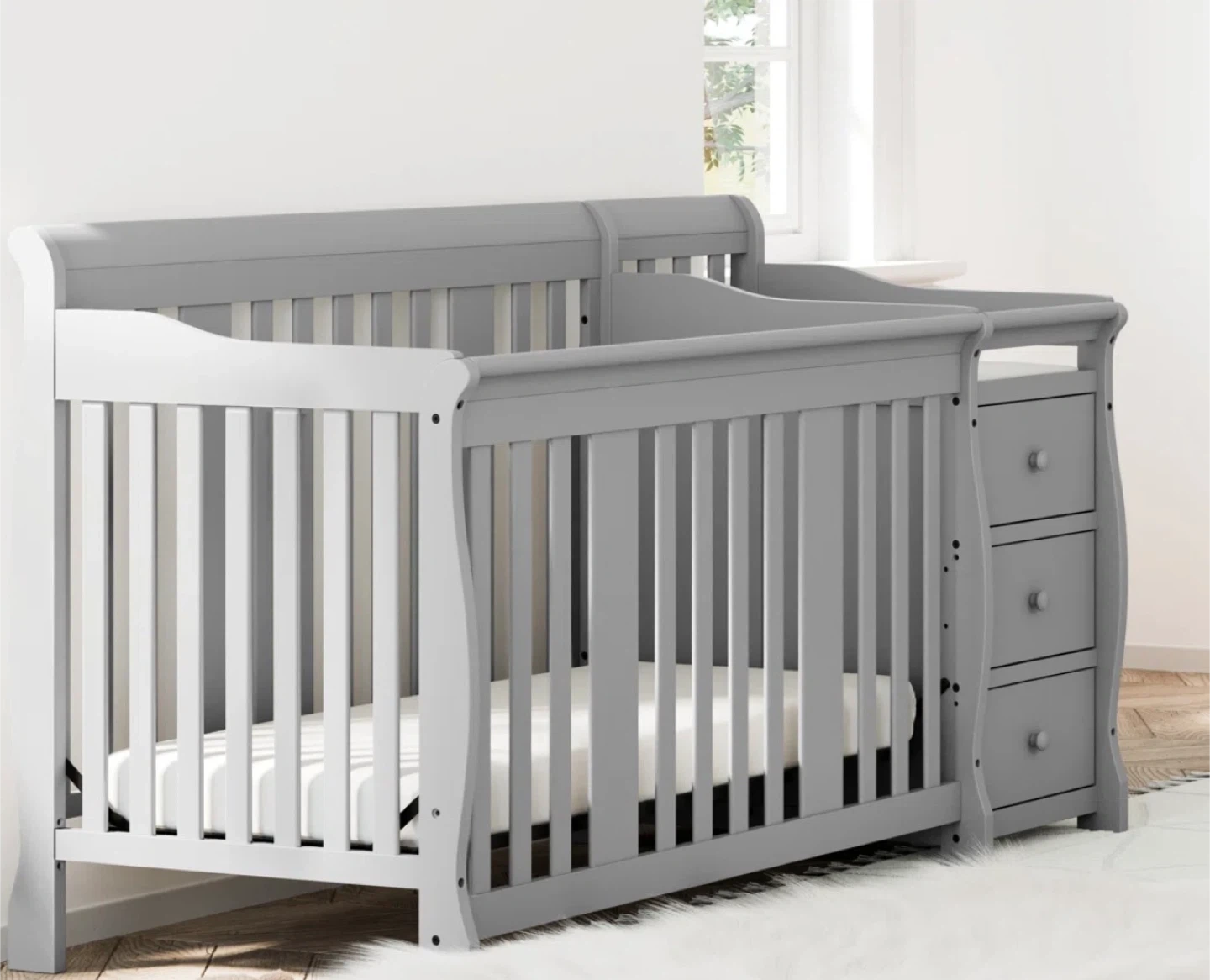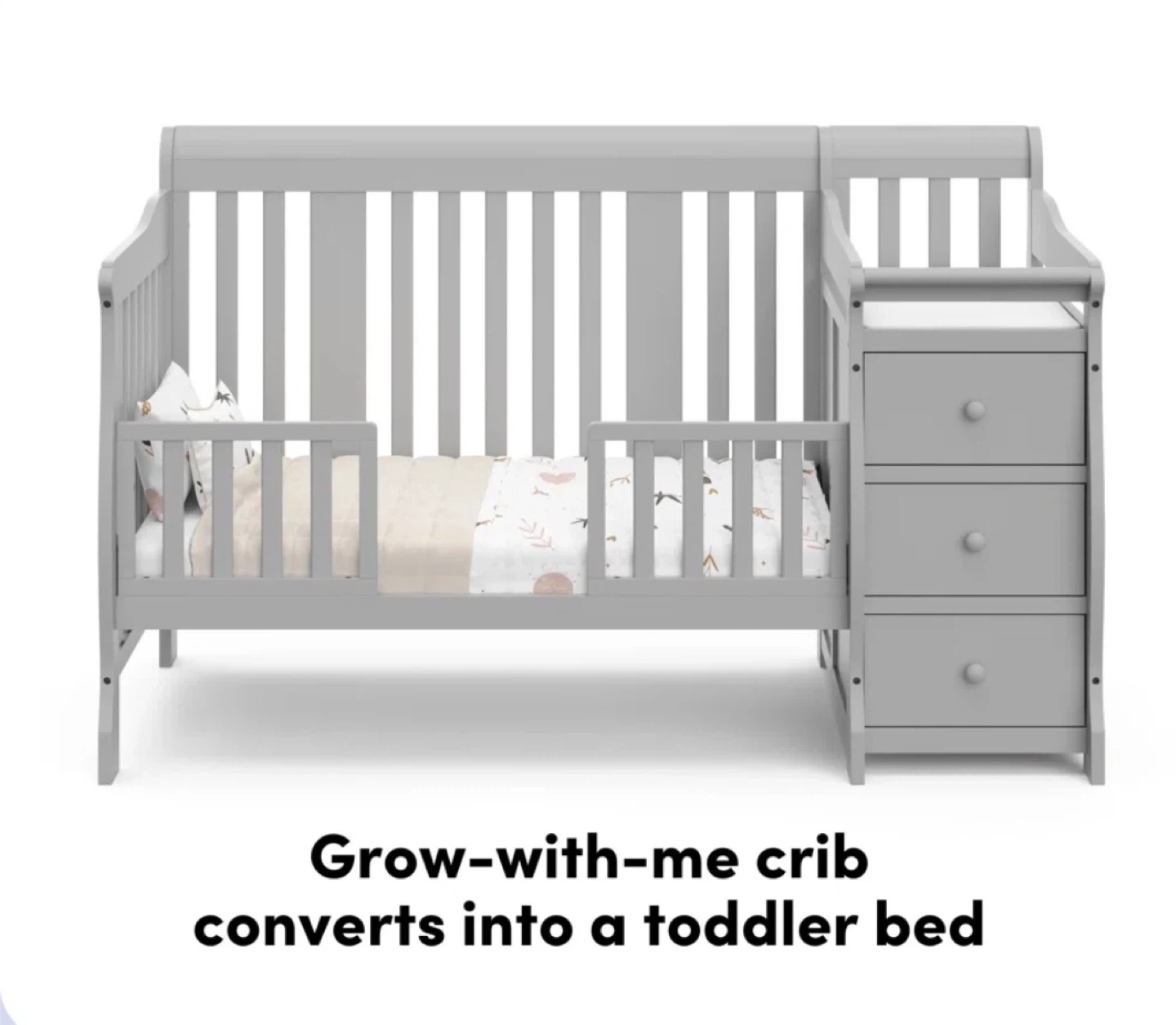 Beautiful grey grow-with-me crib in excellent condition. Converts from crib to toddler bed and can later transition into a full-size bed, making it perfect for long-term use.
