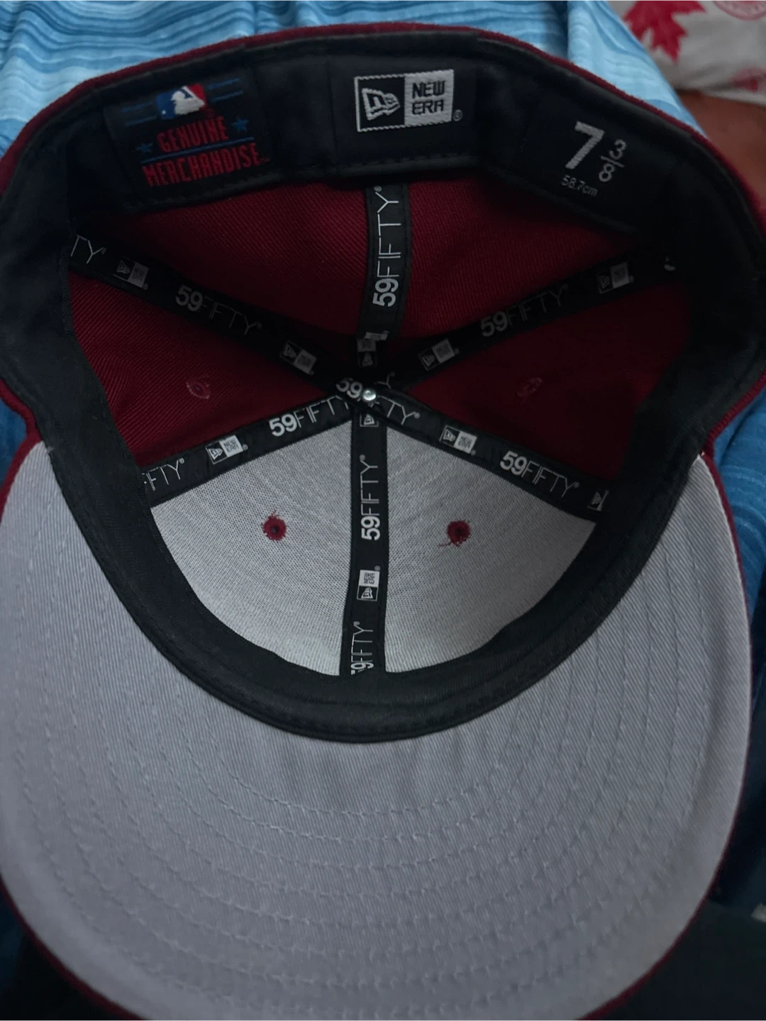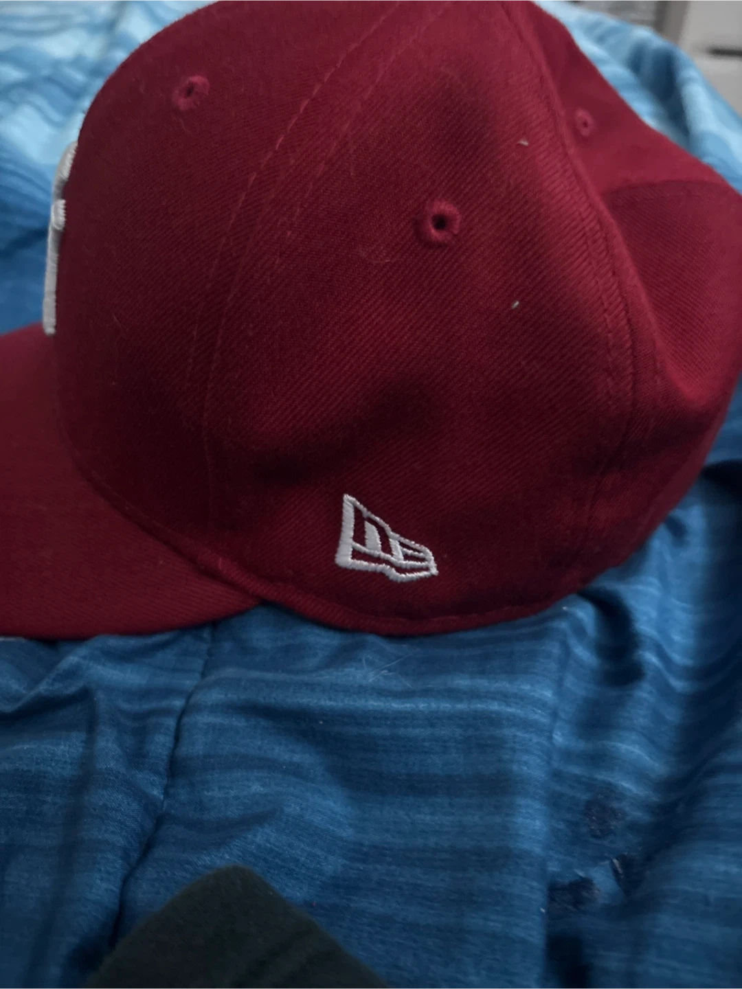 This is a New Era 59FIFTY fitted baseball cap featuring the New York Yankees logo. It's a size 7 3/8. The cap is a deep maroon colour with white embroidery.