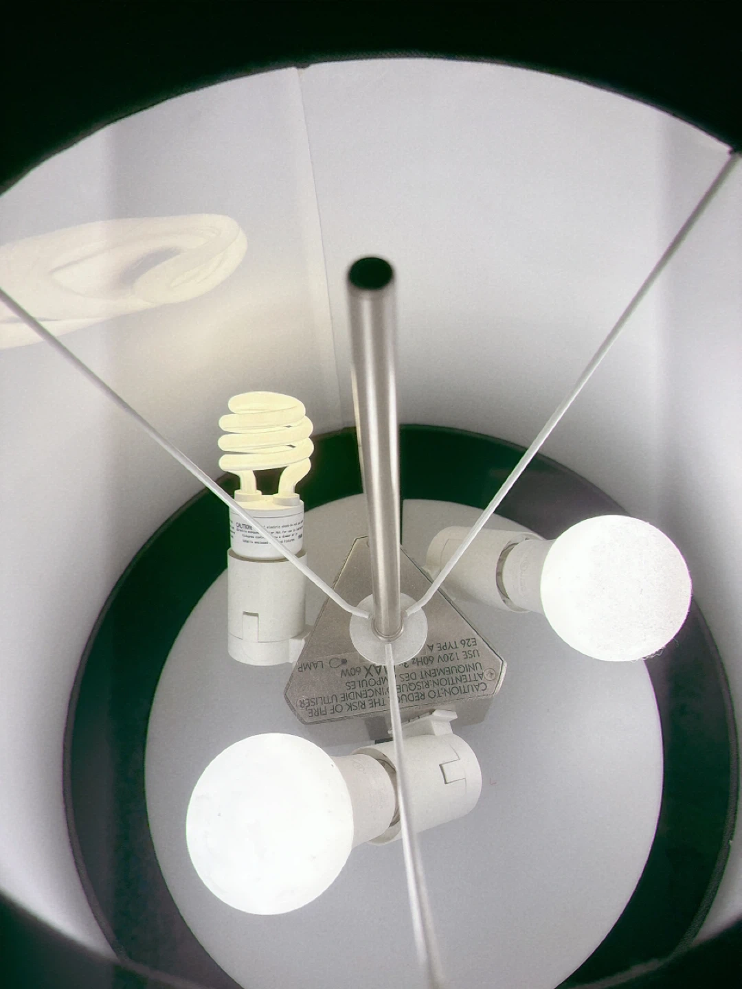 This floor lamp features a sleek metal pole and a stylish black drum shade. It has a weighted circular base for stability and uses E26 type A bulbs, with a maximum of 60W per socket. Includes one CFL bulb and two LED bulbs.