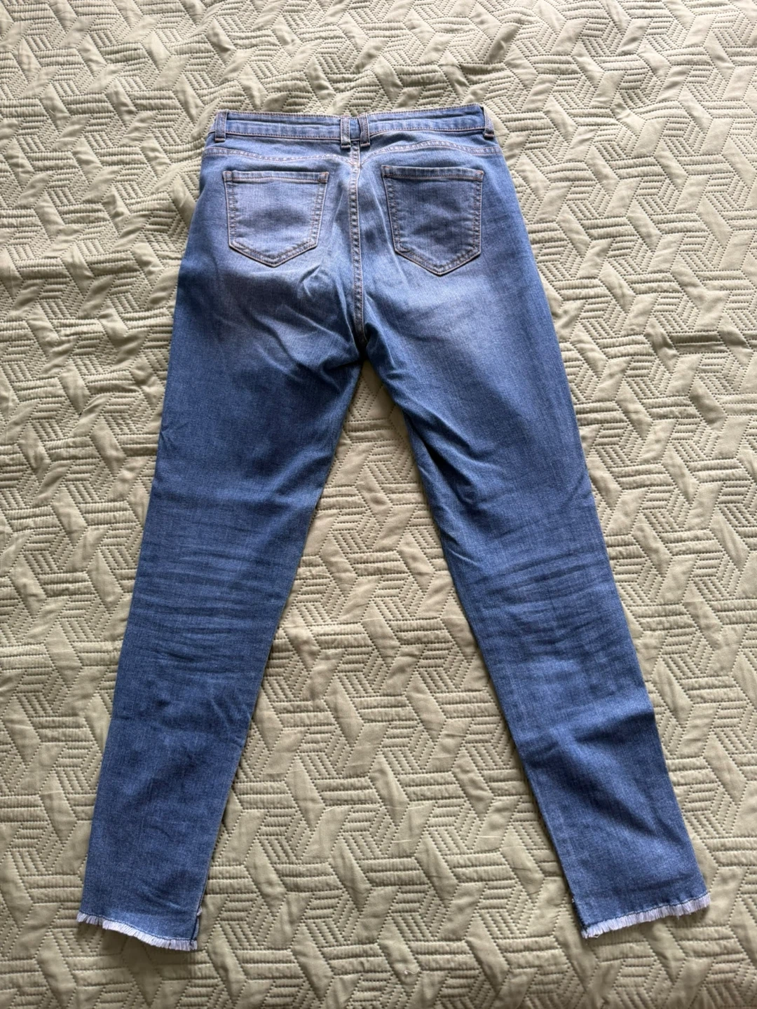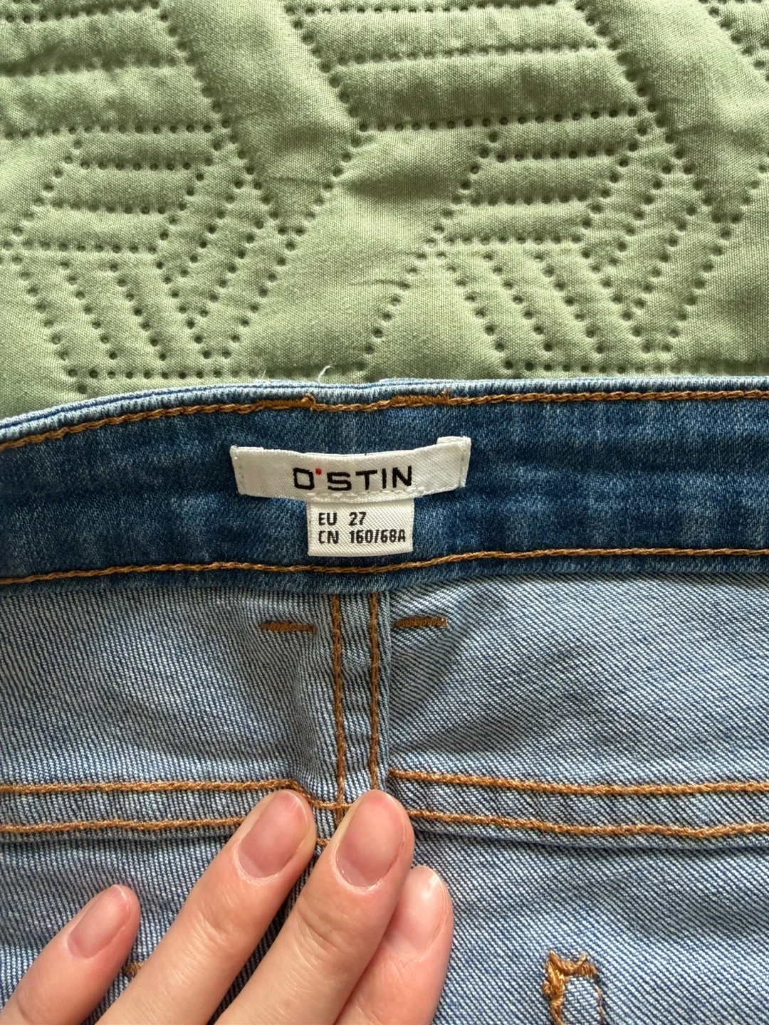 These O'stin jeans are a size EU 27. They're a light wash denim with pearl and stud embellishments on the ankle cuffs.