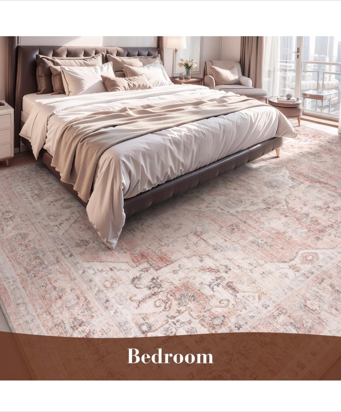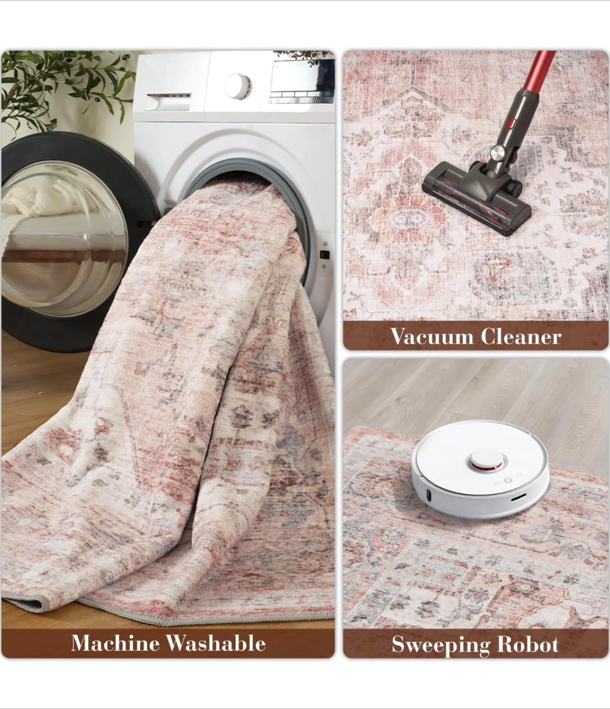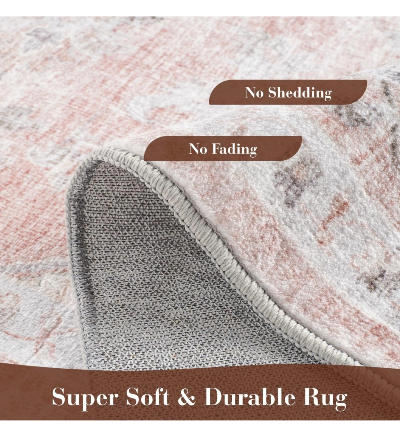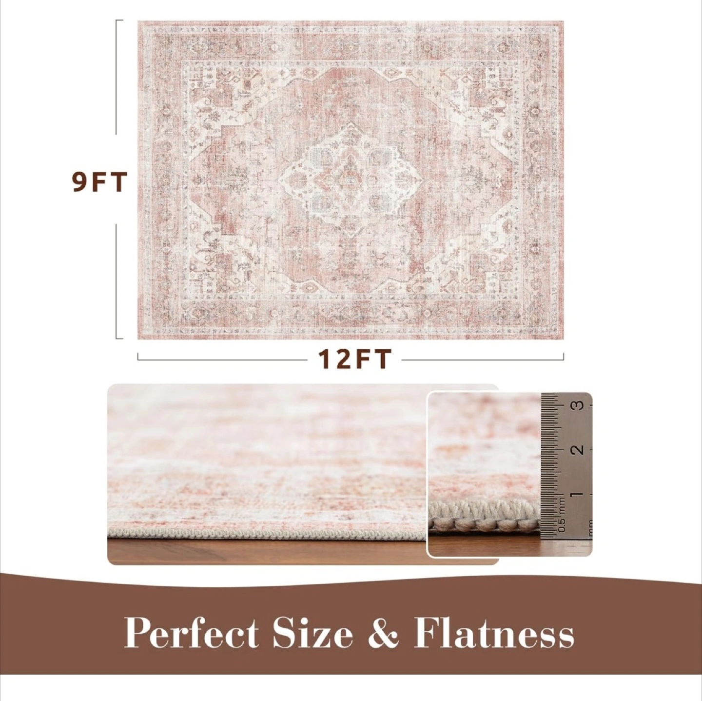 MontVoo-Area Rug 9X12 Rugs for Living Room-Pink Machine Washable Rug-Soft Living Room Rug-Vintage Non Slip Carpet-Rugs for Bedrooms Dining Room Living Room Office
