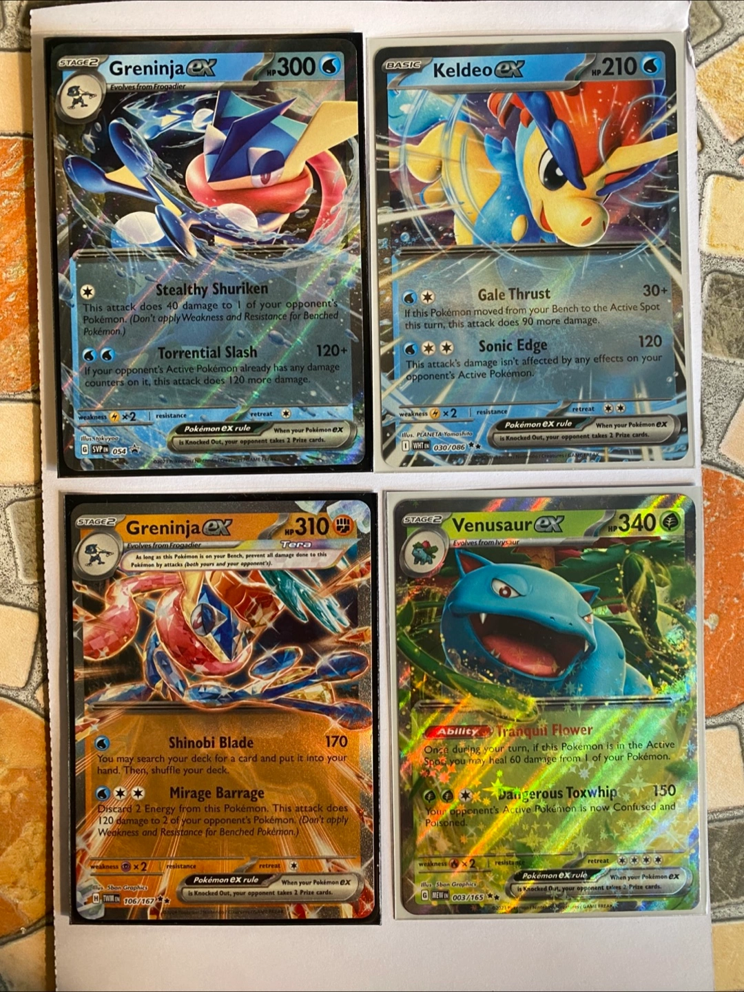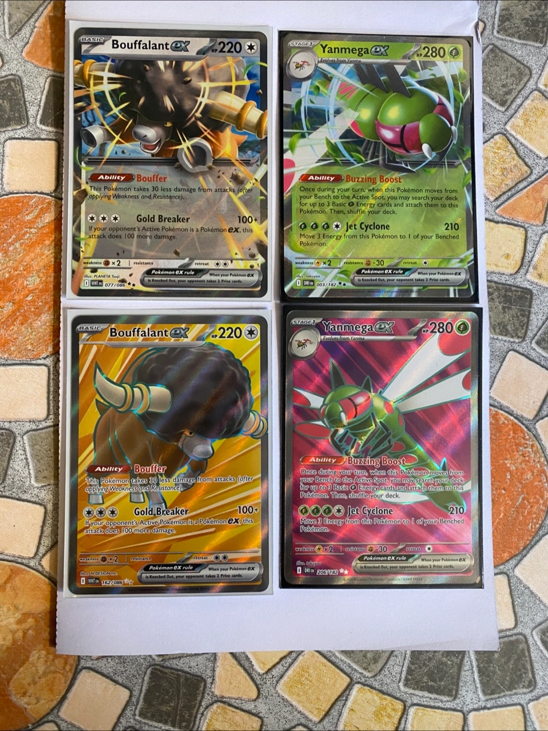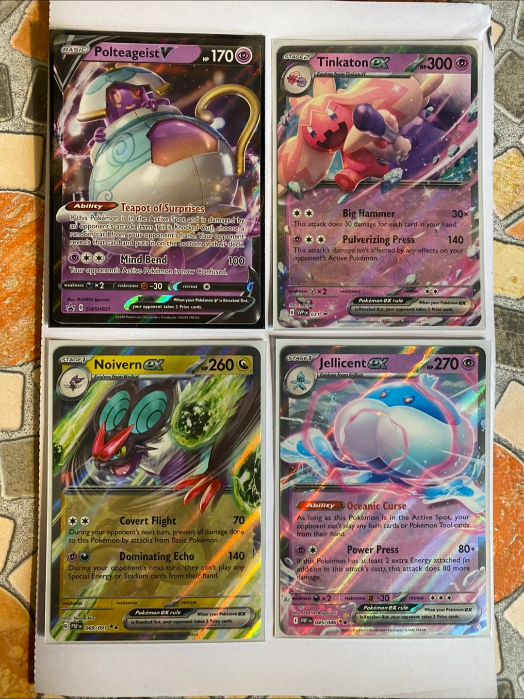 Clearing out some older cards to make space for some new ones! All prices refrenced from ArizonaTCG: Yanmega ex #003 - $0.25 Yanmega ex #206 - $0.50 Buffalant ex #077 - $0.25 Buffalant ex #162 - $0.50 Polteageist V PROMO - $0.50 Tinkaton ex PROMO - $1.50 Jellicent ex #045 - $0.25 Noivern ex #069 - $0.25 Infernape Lv.X PROMO - $1.00 Arceus Lv.x #96 - $1.00 Luxray GL Lv.X #109 - $1.00 Houndoom EX #21 - $0.25 Kaldeo ex #030 - $0.25 Greninja ex PROMO - $1.50 Geninja tera fighting ex #106 - $0.25 Venusaur ex #003 - $0.50 Geninja tera fighting ex (metal) - $10.00