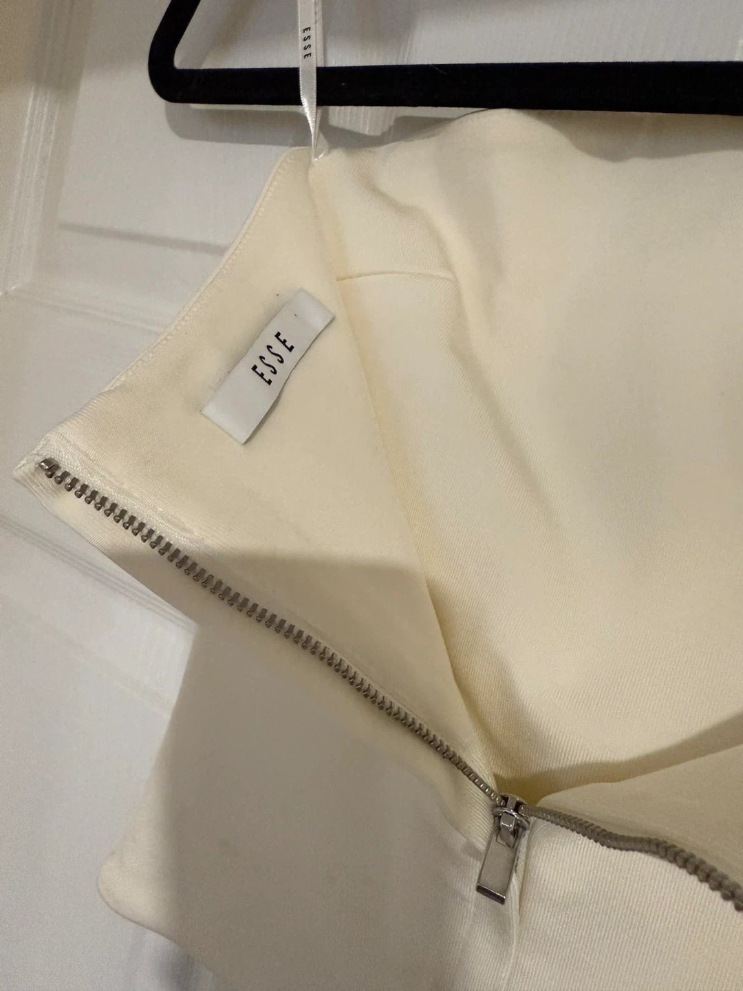 Cream bandeau top from ESSE. It's made of 66% Viscose, 27% Nylon, and 7% Elastane. This top is perfect for warmer days or layering under jackets. Recommended eco dry clean, cold hand wash, and dry flat in shade.