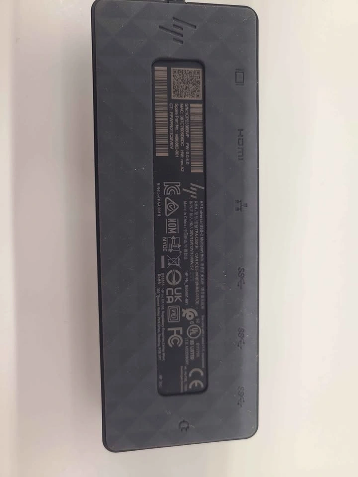 It comes with the charger, a carry bag, and an HP Universal USB-C Multiport Hub (Model 50H55AA).