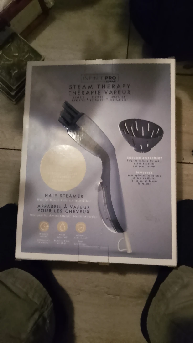 This InfinitiPro by Conair steam therapy hair steamer helps hydrate dry ends, enhance texture, and boost volume. It comes with a diffuser attachment. The steamer is ideal for natural, curly, and relaxed hair.
