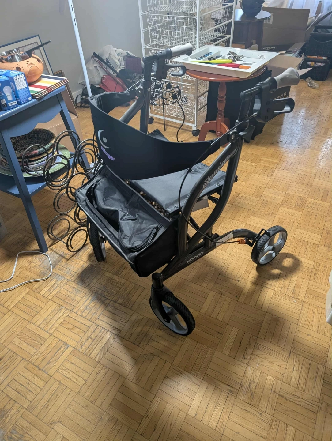 77Selling an Excursion XWD rollator walker in great condition! It features a comfortable seat and a convenient basket for carrying items. Perfect for anyone needing a little extra support while getting around. Extra wide capacity