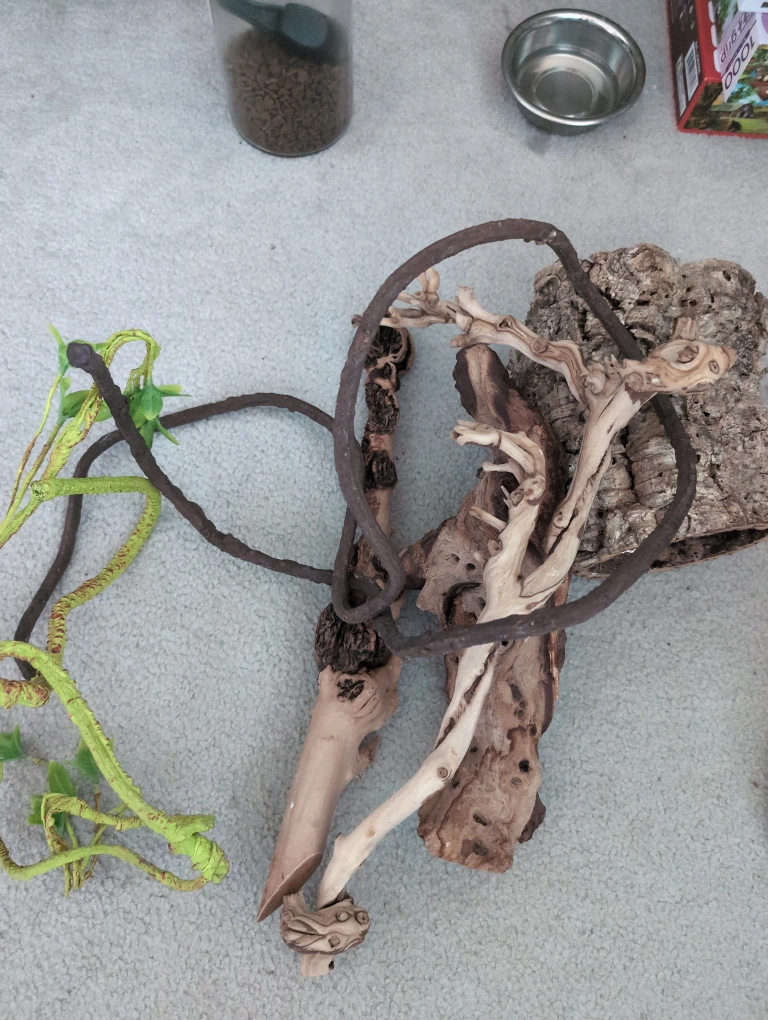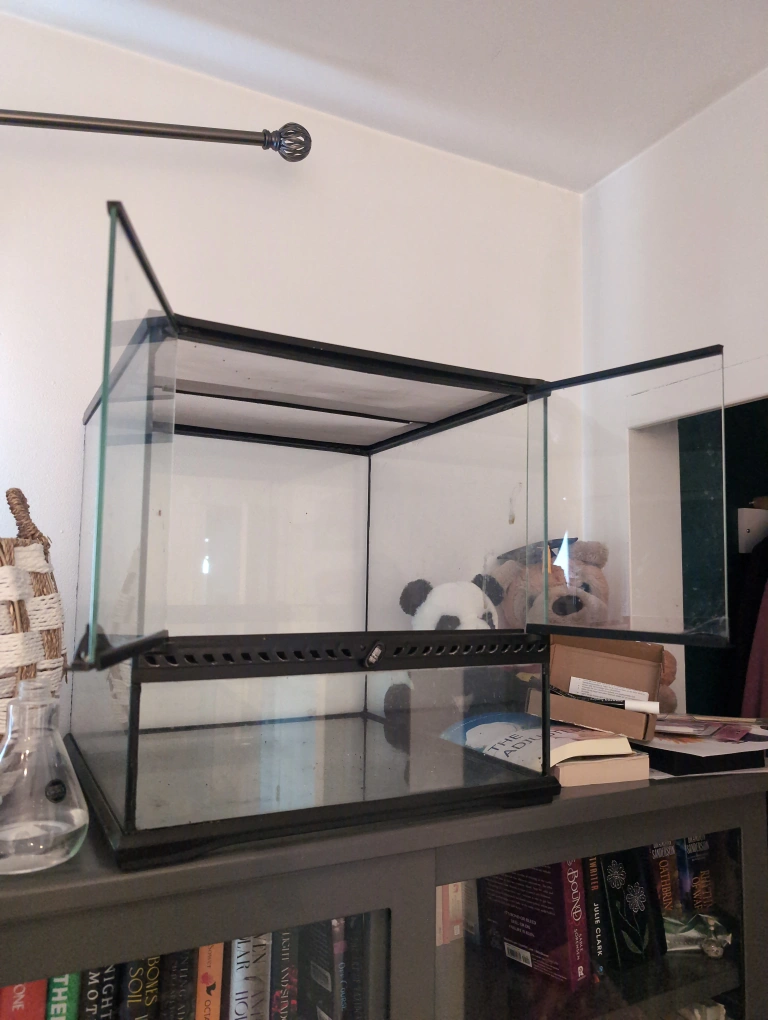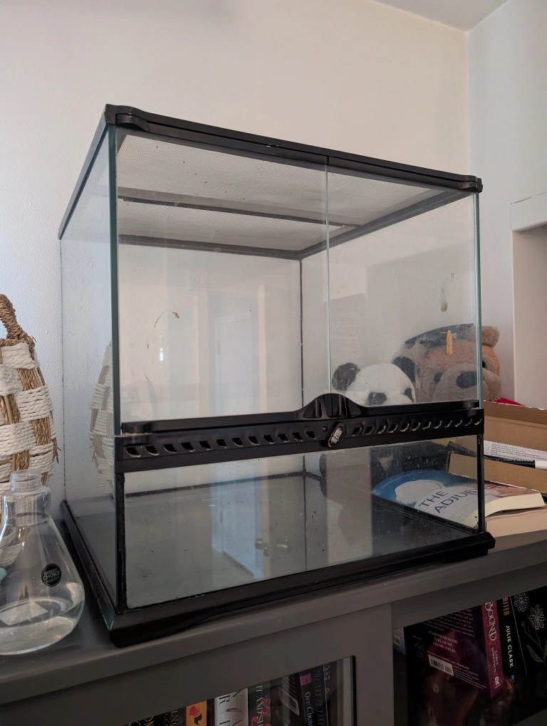 Selling an Exo Terra glass terrarium. It's in great shape and ready for a new reptile or amphibian friend! Includes the terrarium itself, plus some decorative items like driftwood and artificial vines to get you started on creating a comfortable habitat size 18x18x18