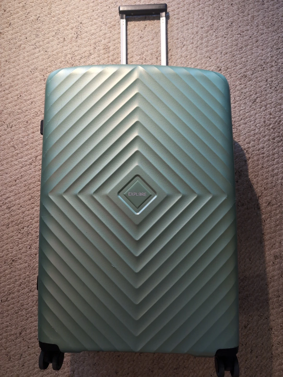 65Selling a turquoise hardside suitcase from Explore! It's in great shape and ready for your next adventure. Features a durable hardshell and smooth-rolling wheels.