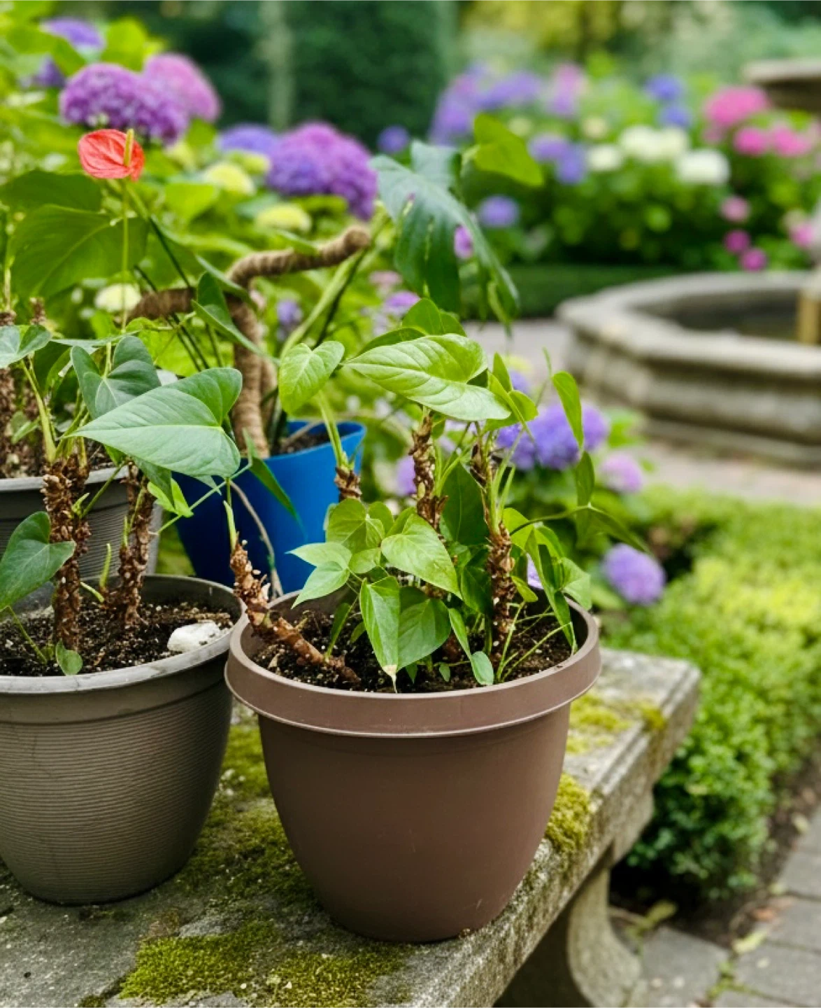 A carefully curated selection of premium indoor plants featuring a tall Dracaena, vibrant red Anthuriums, and a stunning Monstera Deliciosa. This elegant collection brings a refined, modern atmosphere to any interior space. Perfect for design-focused homes, offices, or boutique interiors. All plants are healthy, well cared for, and ready to become a statement piece in your space.
