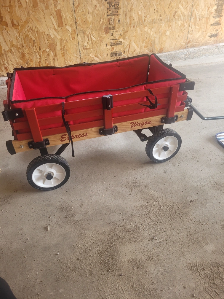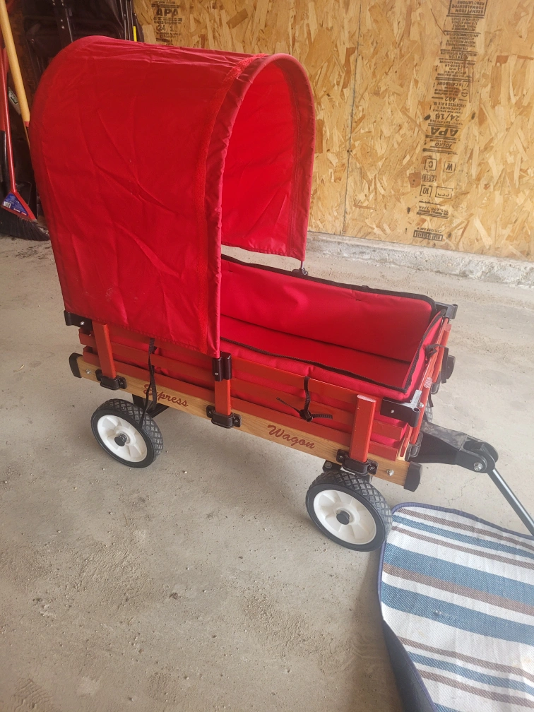 Selling a red Express Wagon. It's in great shape and ready for new adventures! Perfect for hauling toys, garden supplies, or even giving the little ones a ride around the park. also includes ski attachments for the winter.