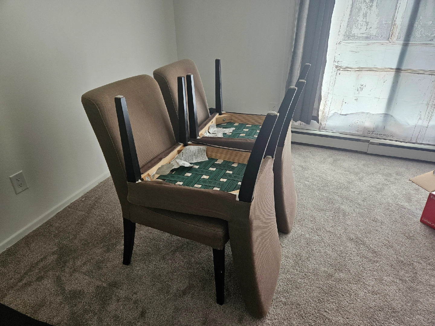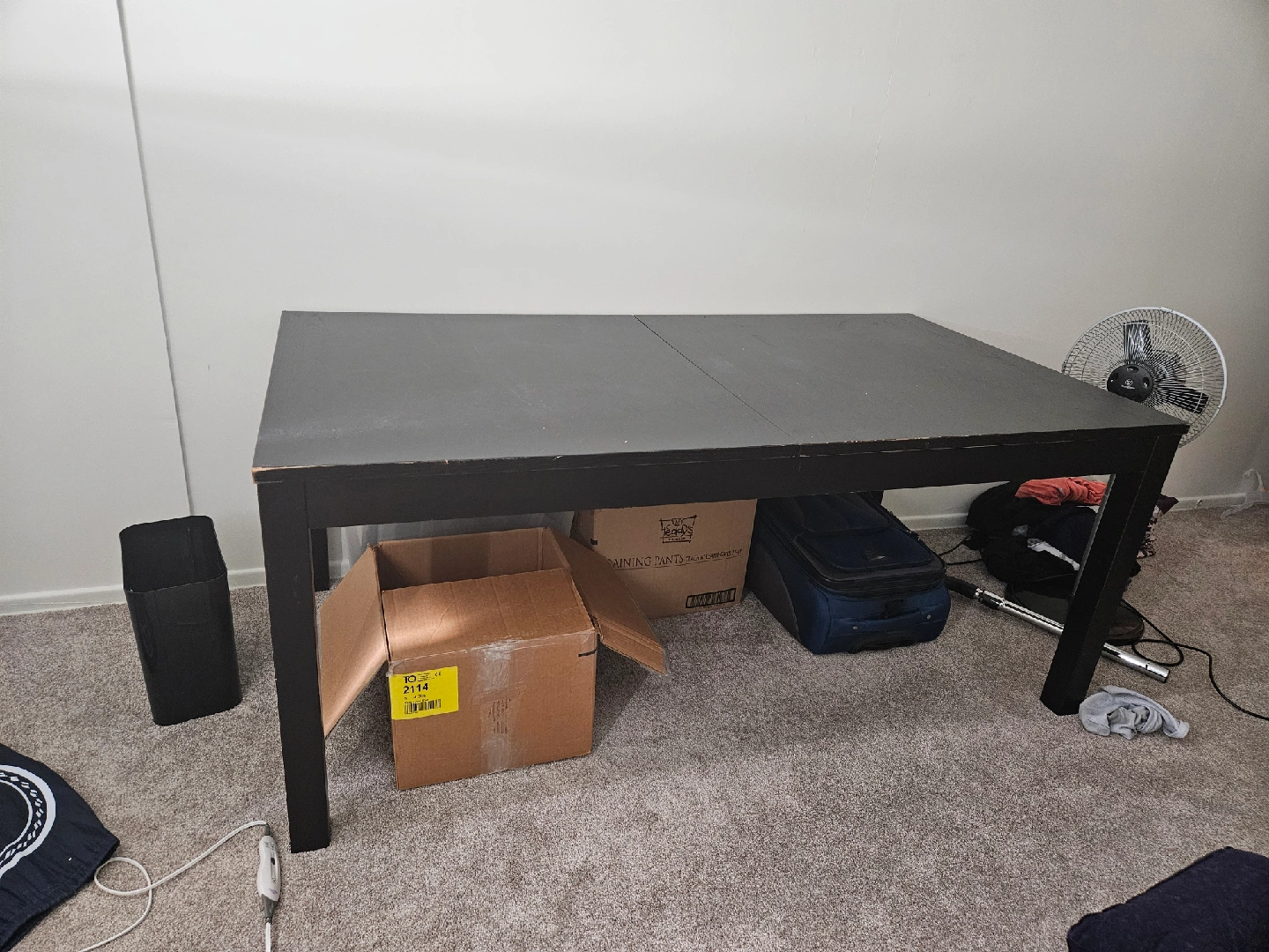 10Selling an extendable dining table with four matching chairs. The table is black in colour and is in good condition. Perfect for family gatherings and can be extended up to 8 people for larger gatherings. Chairs are upholstered in a brown fabric.6 feet long by 3.2 feet wide, extends to 9 feet long.