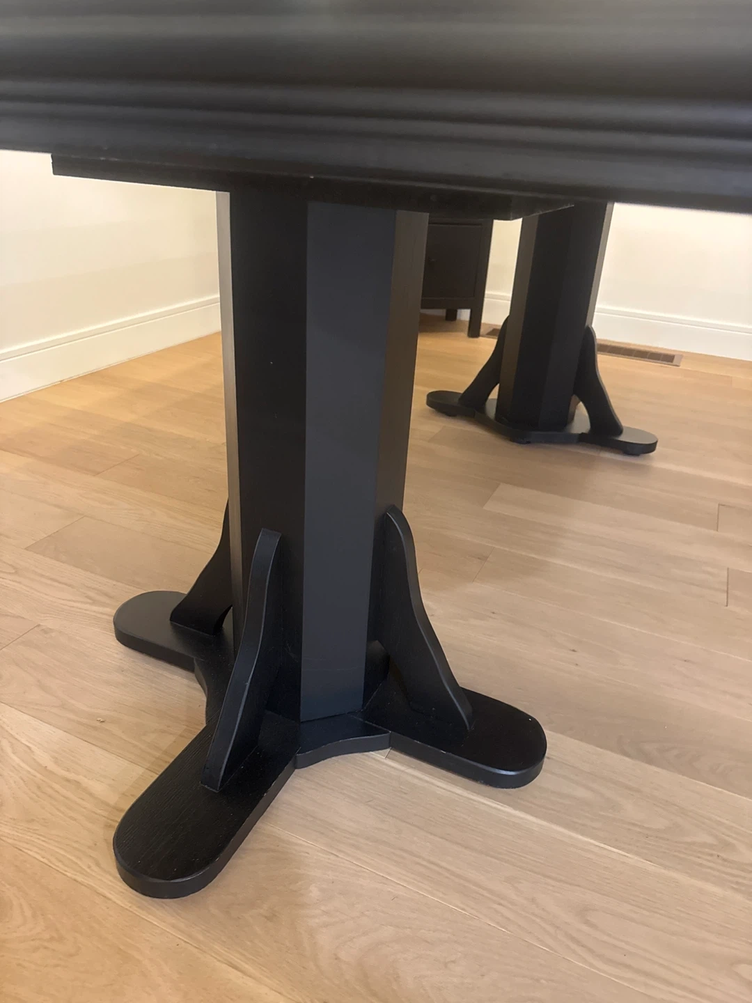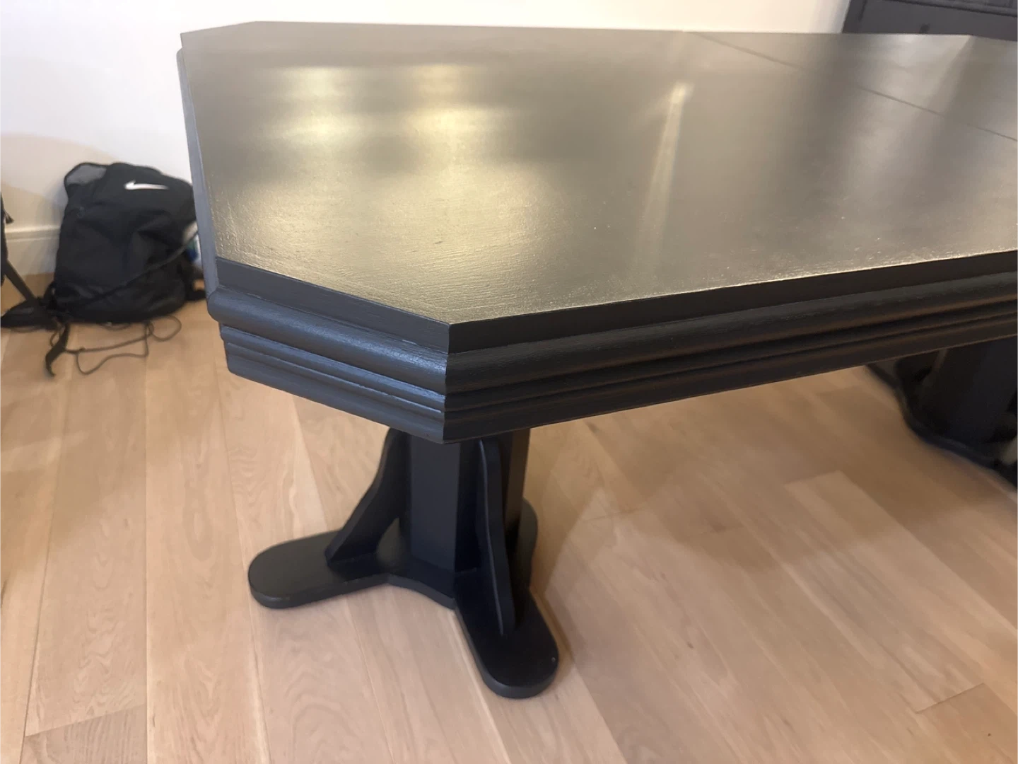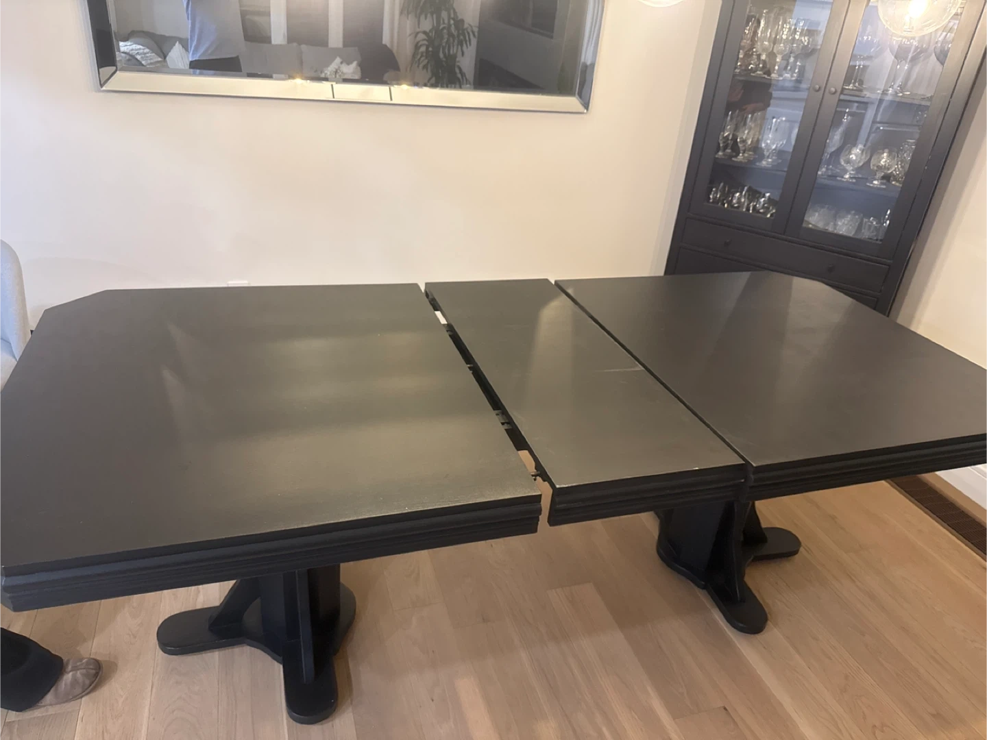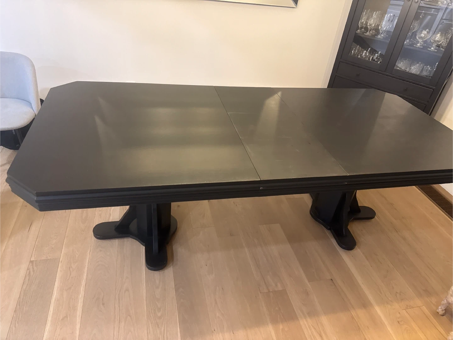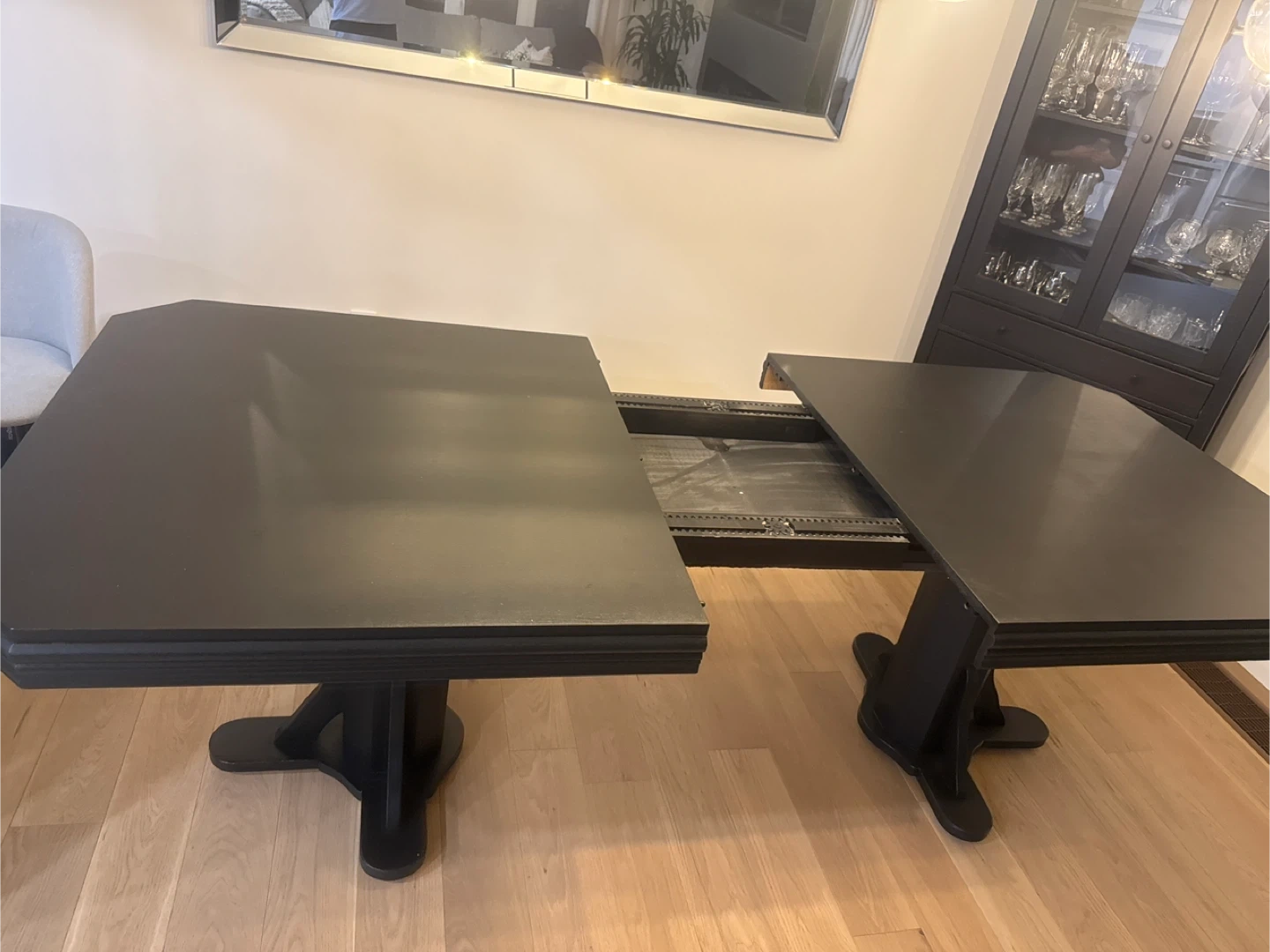 Selling a beautiful black extendable dining table! It's in great condition and perfect for family dinners or hosting friends. The table extends easily to accommodate more guests. A stylish addition to any dining room!