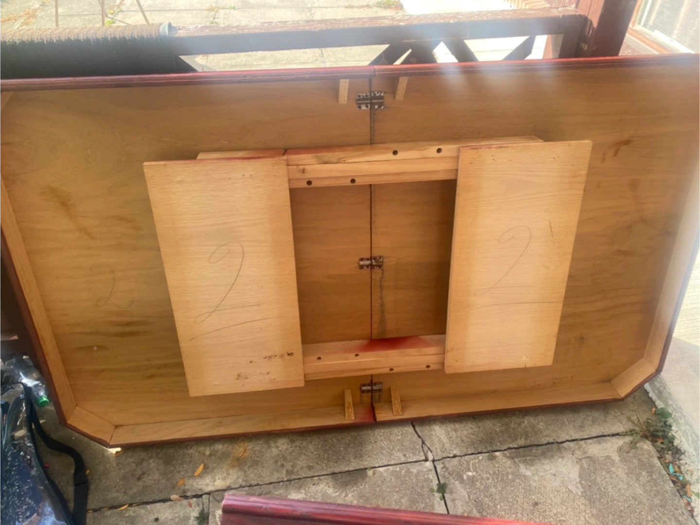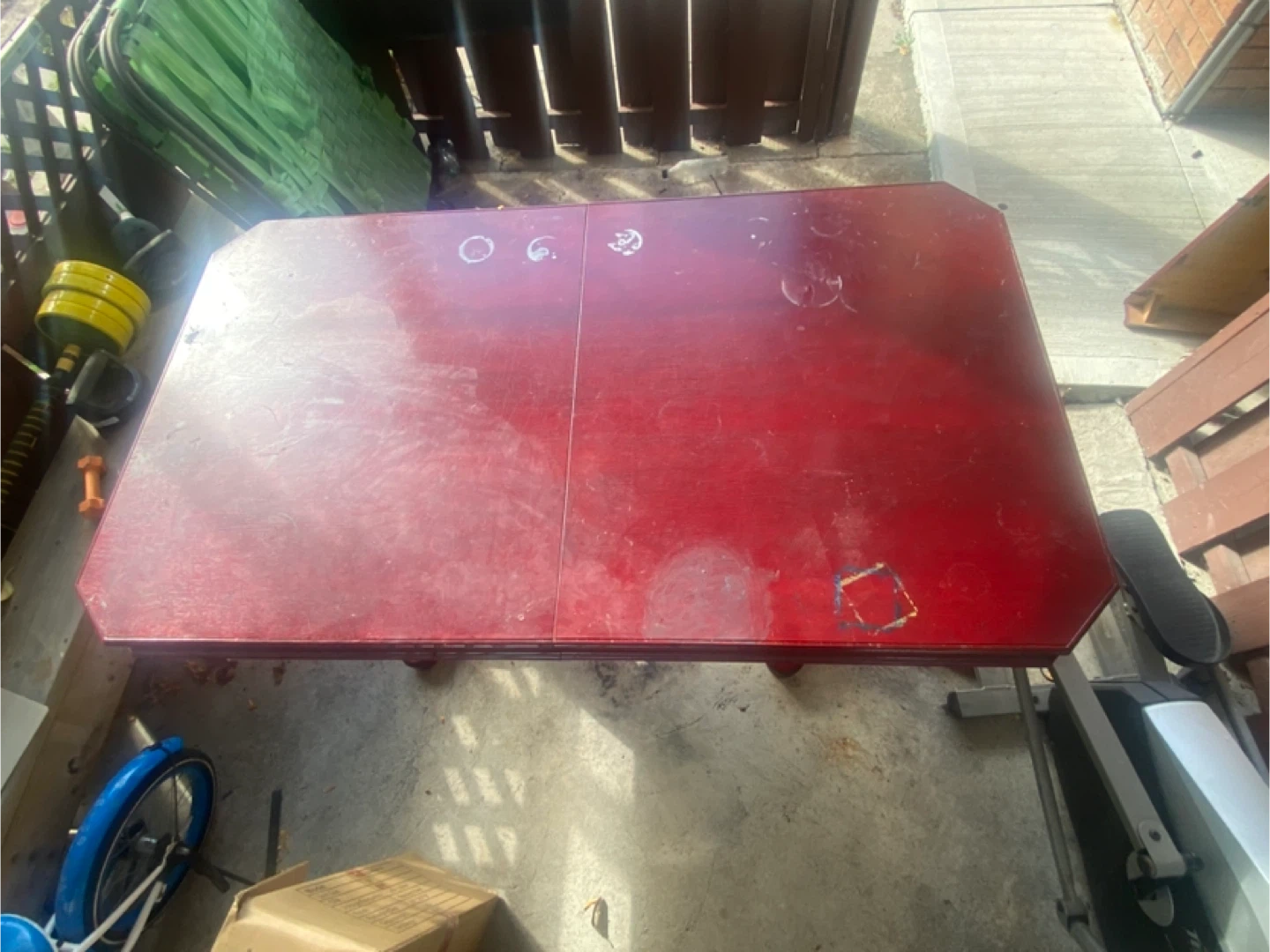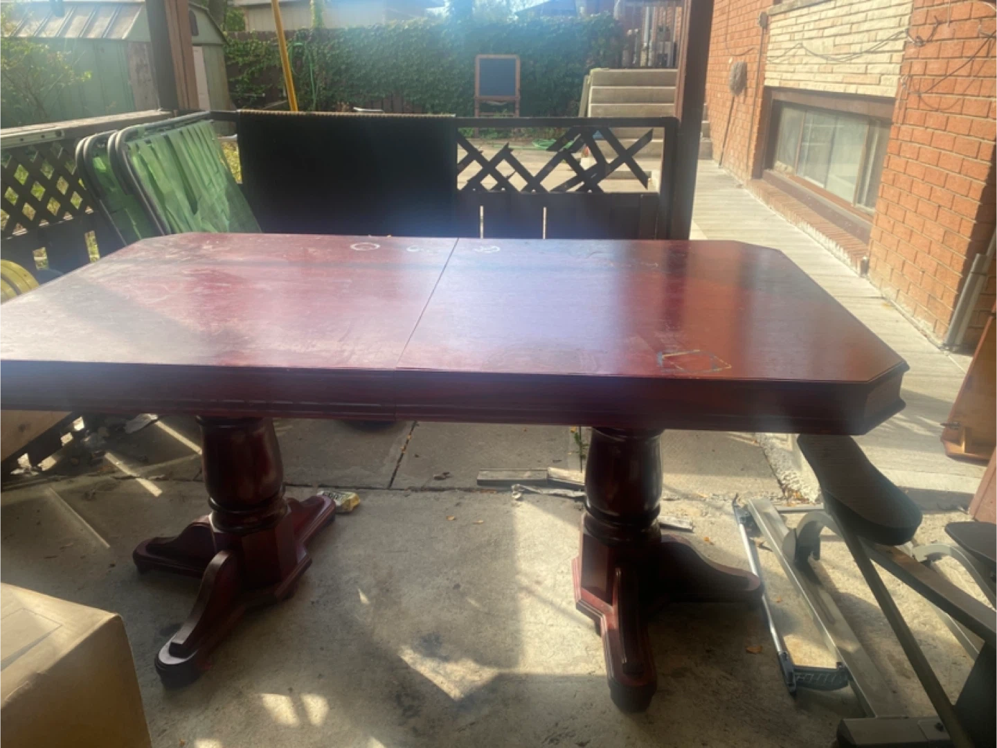 15Selling a wooden dining table with an extendable feature! It's in used condition, as shown in the photos. Perfect for family dinners or gatherings. Comes with the nails. Cash only please