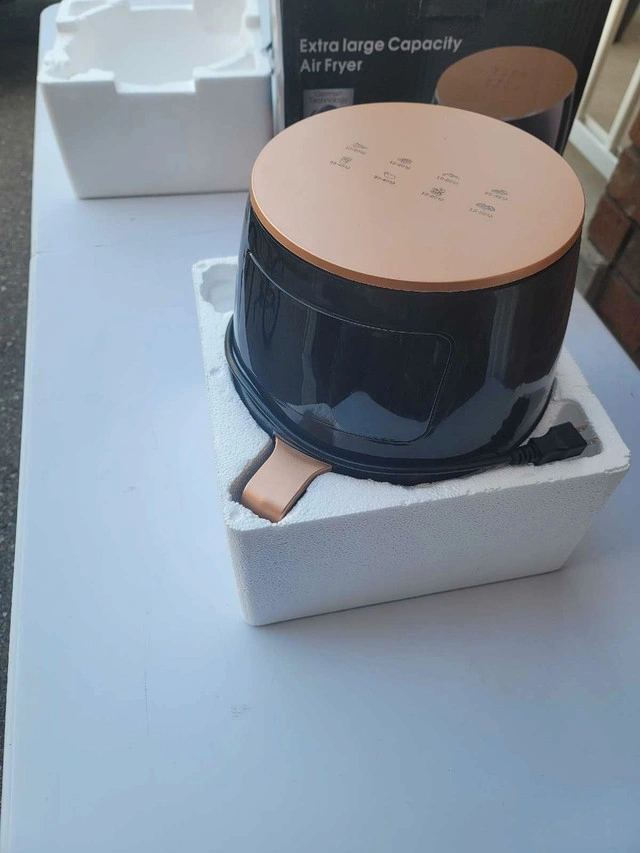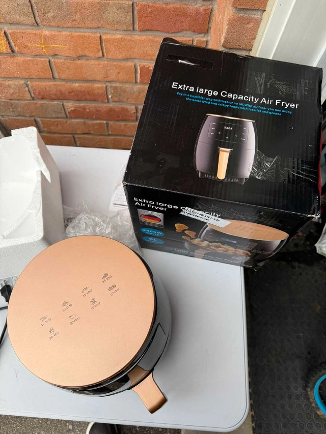 INTEXCA & DESIGN 6L XL Air Fryer – 2400W – Digital Display. Cook family-sized meals with ease! This powerful air fryer delivers fast, crispy, and healthier results using rapid air circulation technology. ✅ Extra-large 6L capacity – perfect for families (3–5 people) ✅ 2400W high power – cooks faster than a traditional oven ✅ Digital LCD touch screen – easy controls at your fingertips ✅ 8 preset cooking modes – one-touch for fries, chicken, fish & more ✅ 85% less fat vs. traditional frying – same flavor, crispy finish ✅ Non-stick basket – easy to clean ✅ Compact enough for storage while still handling big meals Condition: Brand new. Milton pickup. Mississauga can be arranged.