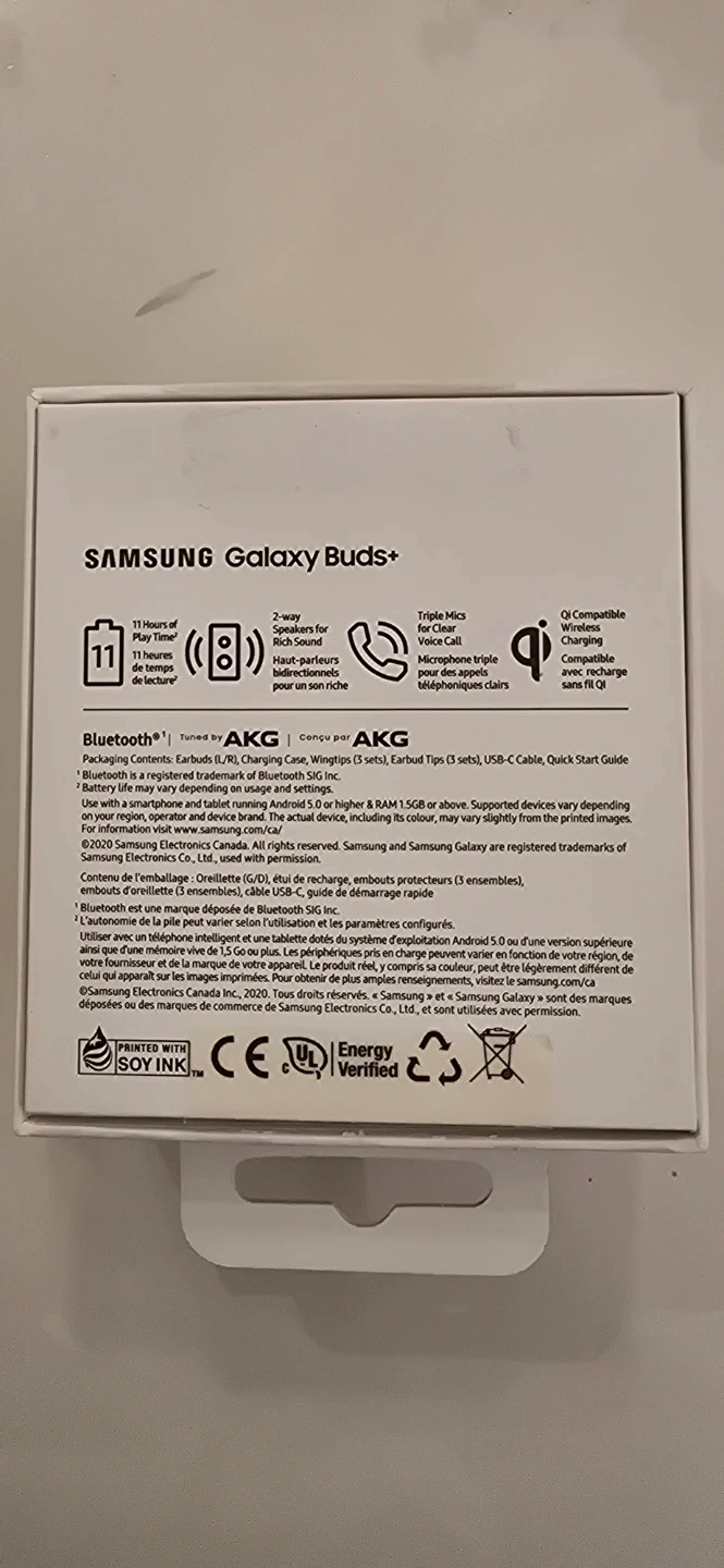 Selling a pair of Samsung Galaxy Buds+ in black! They come with the original box and all included components. These earbuds feature: