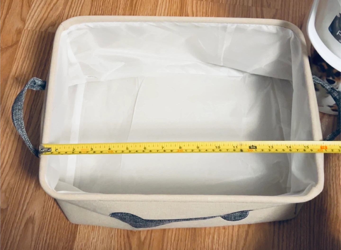Beige Fabric Toy Container, (It’s brand new but somehow must have touched a bit of water, the very bottom has slight water stains)