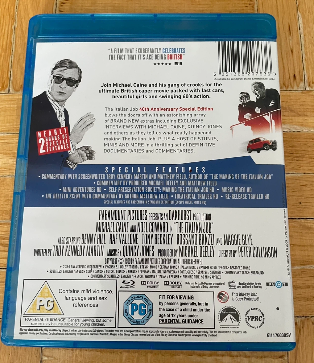 Like New, The Italian Job Blu Ray * Import, Loaded With Special Features. Region A (Plays In North American Players).