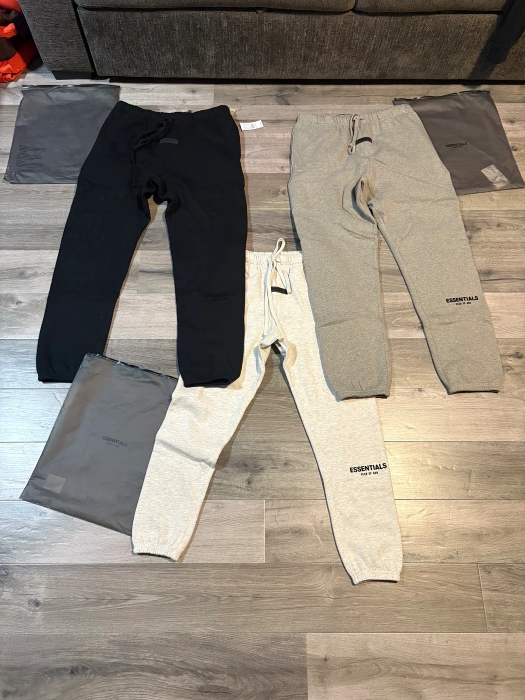 Authentic Three Fear of God Essentials hoodies and three pairs of sweatpants are available. Items come in black, grey, and cream. Most items include their original packaging bags. Cotton blend material. free delivery if you are in York region.