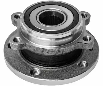 This is a wheel hub assembly and a separate speed sensor. Both are automotive parts for a vehicle's braking and wheel speed system. They're made of metal and plastic for durability.
