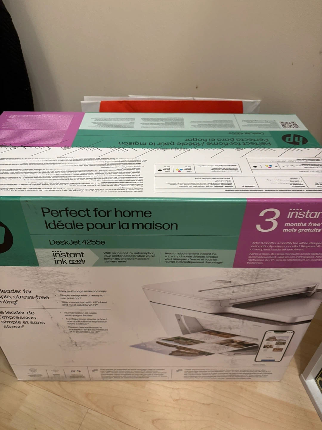 It's a HP DeskJet 4255e printer, perfect for home use. Includes an instant ink subscription for 3 months free. Offers easy multi-page scan and copy capabilities.