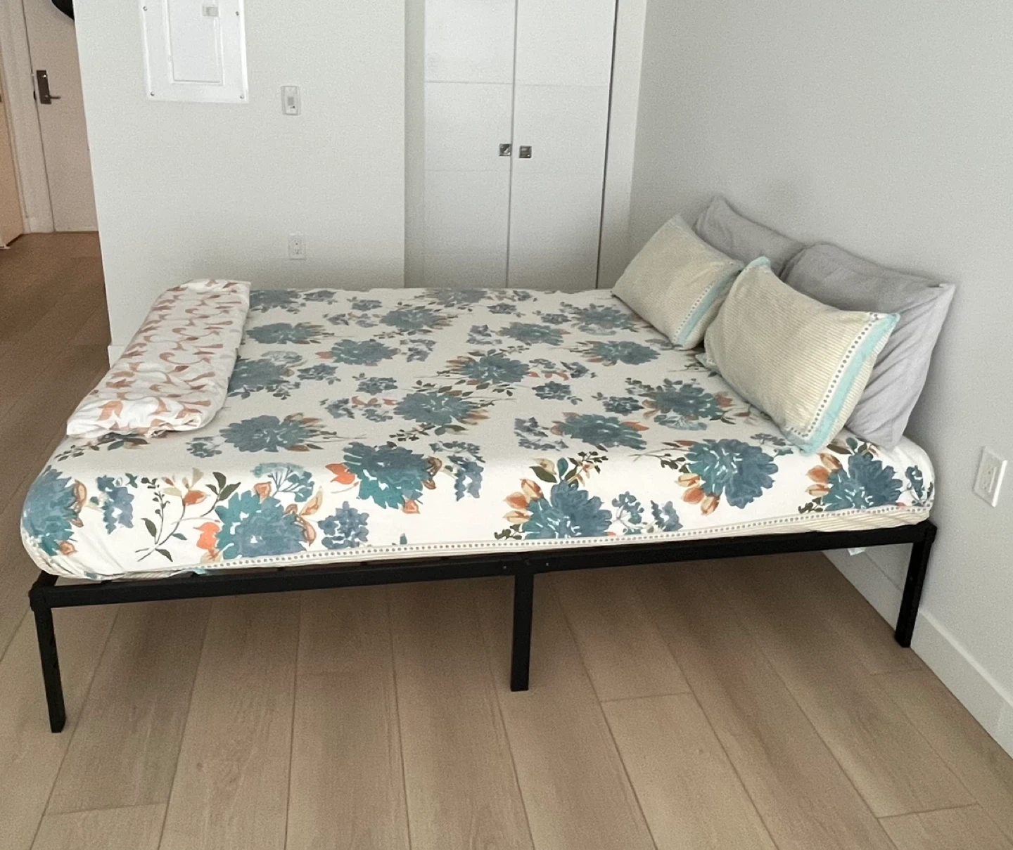 This bed frame offers a sturdy metal construction and 12 inches of under-bed clearance for powerful storage space. It's a durable and practical foundation for your mattress. 6 month’s old like new. No termite or pet home. Selling due to relocation