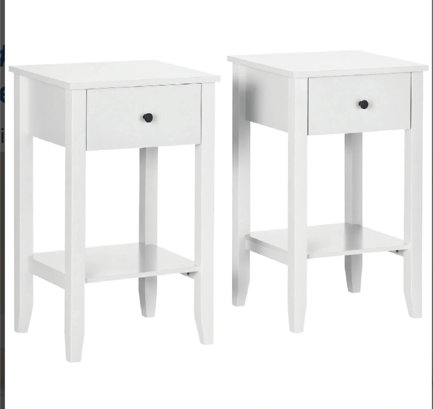 These HOMCOM side tables offer a blend of style and functionality, perfect for any bedroom or living space. This set includes two brand-new side tables, still in their original packaging, ensuring they are in pristine condition. Each table features a clean, white finish, a smooth-gliding drawer, and a convenient open shelf for additional storage. The modern design complements various decor styles, making these tables a versatile addition to your home.