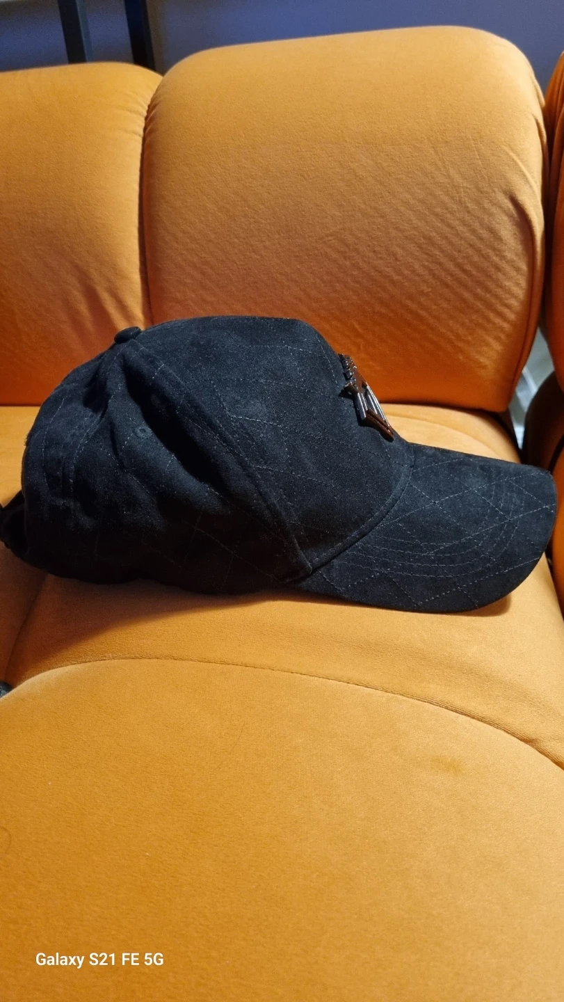Here's a stylish black baseball cap from Exclusive Vibes. It features a unique crown logo and a quilted pattern. Perfect for adding a touch of flair to any outfit!