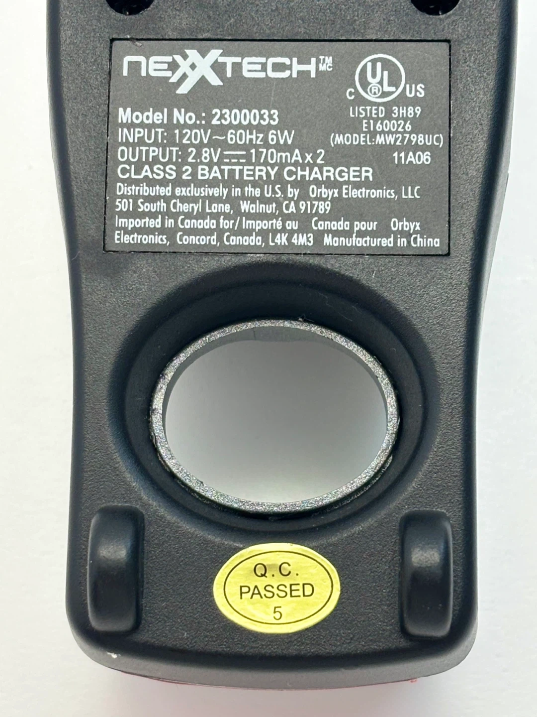 Input: 120V~60Hz 6W. Output: 2.8V === 170mA x 2. It's a Class 2 battery charger. This is useful for charging your rechargeable batteries when they run low.