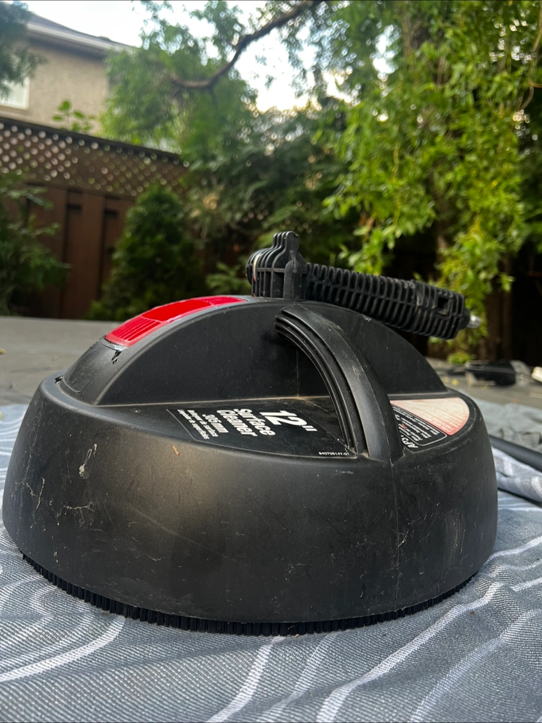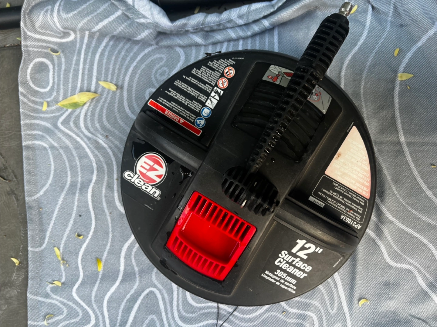 Selling a 12-inch EZ Clean Surface Cleaner โ great for driveways, decks, patios, sidewalks, and other flat surfaces. Works with most pressure washers. In excellent working condition! Features: โ 12โ (305mm) wide cleaning path โ covers large areas quickly โ Compatible with most gas pressure washers (connects easily) โ Lightweight & durable plastic body โ Ideal for removing tough grime, algae, and stains from concrete or wood ๐ฆ never used and in excellent functional condition