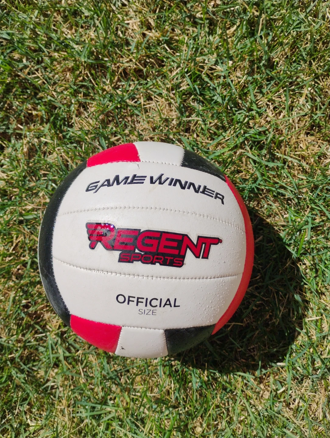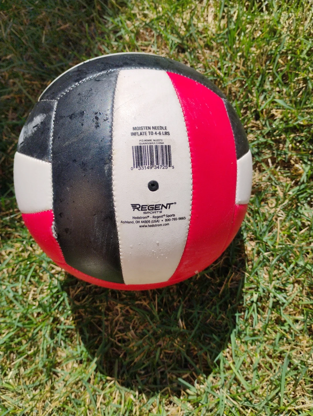 Official size volleyball from Regent Sports. Features a durable construction with a classic red, white, and black design. Inflate to 4-6 lbs. There's nothing wrong with it and it is very high quality.