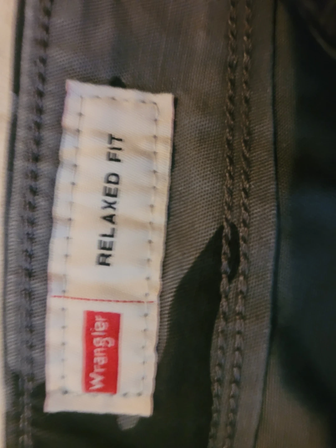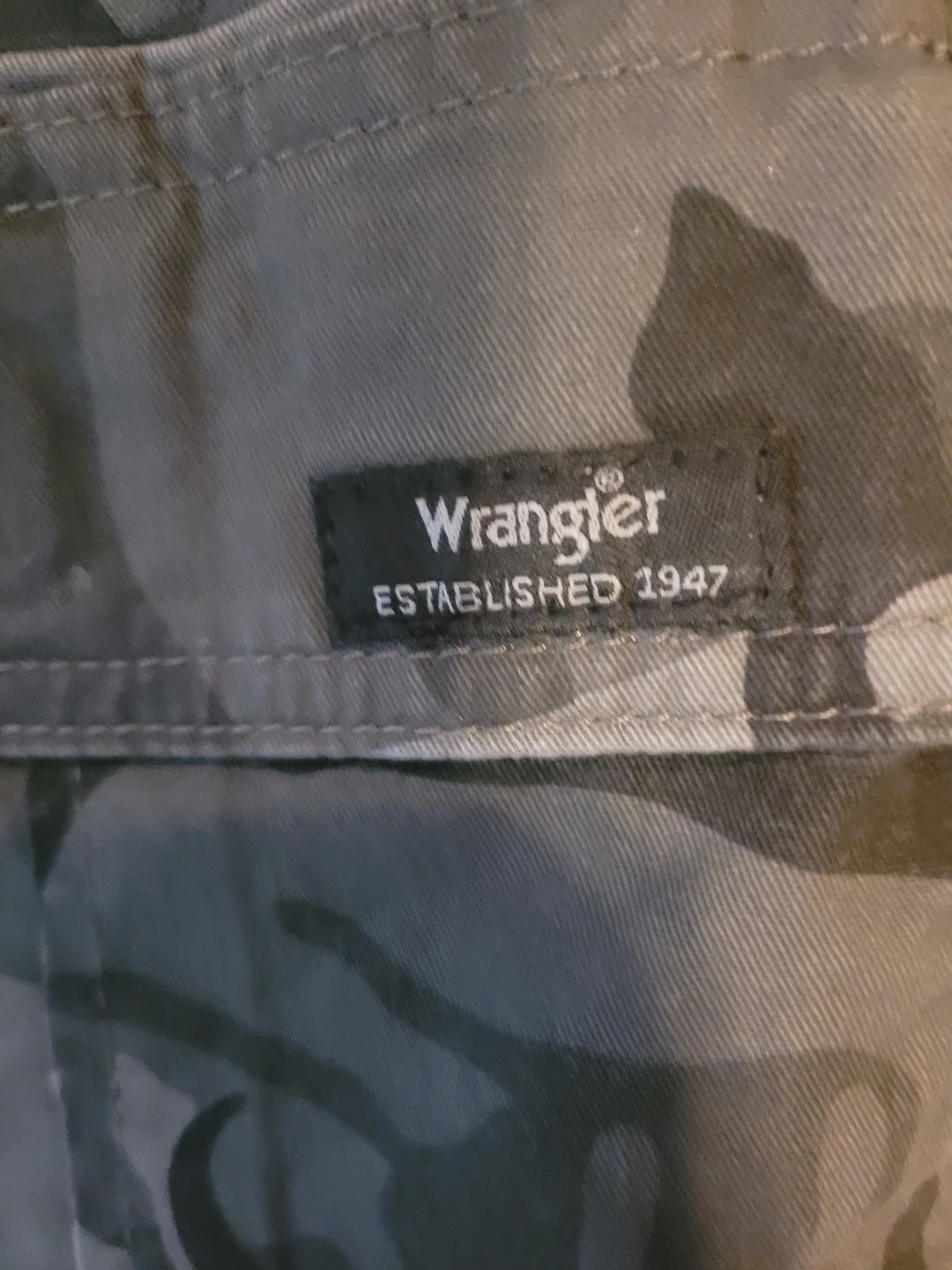 Selling a pair of Wrangler relaxed fit cargo shorts in a cool camo pattern! These shorts are perfect for casual wear or outdoor adventures. They're comfortable and have plenty of pocket space.