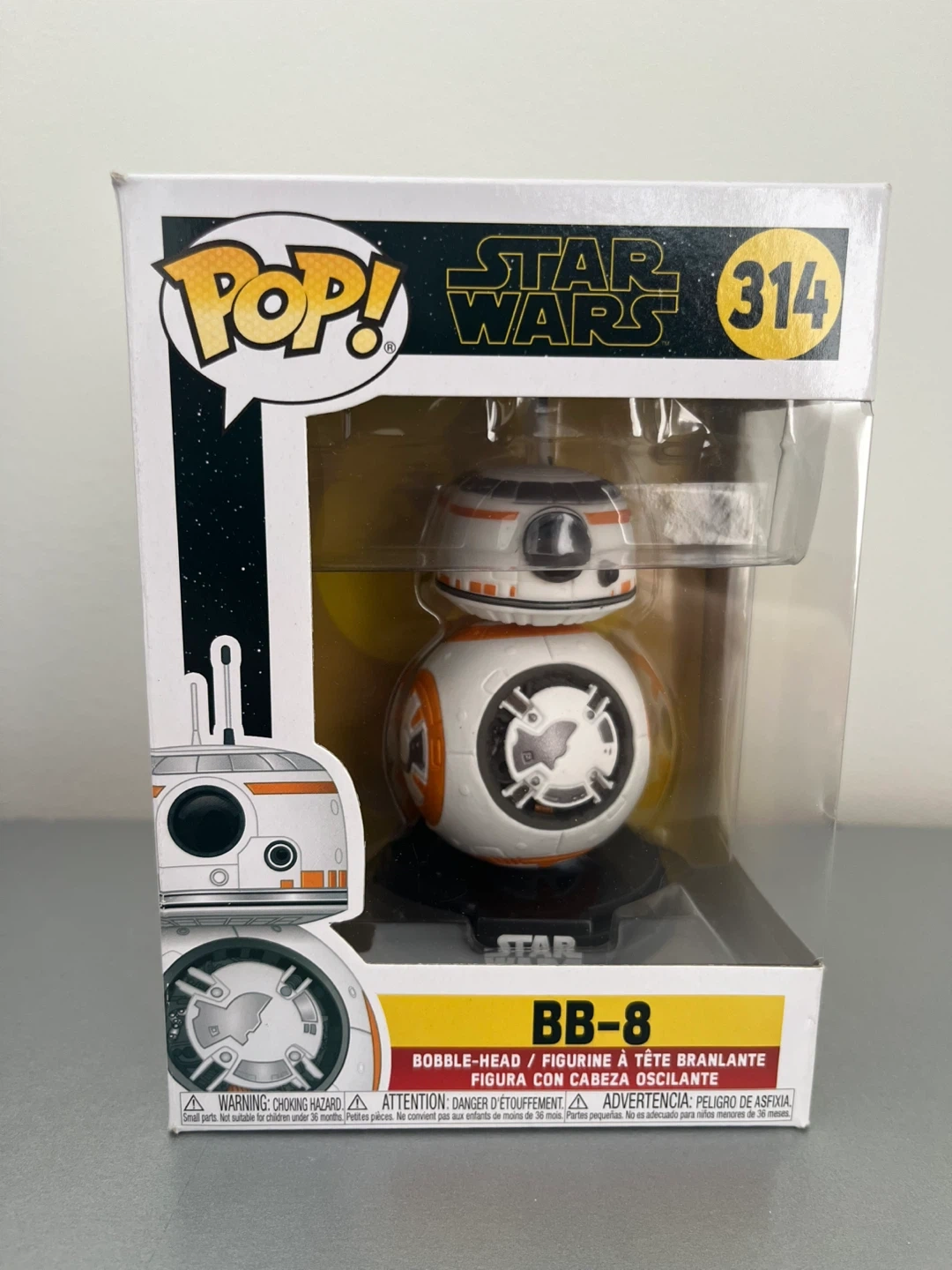 This is a Funko Pop! Star Wars BB-8 bobble-head figure, number 314. It comes in its original box. This collectible is great for any Star Wars fan!
