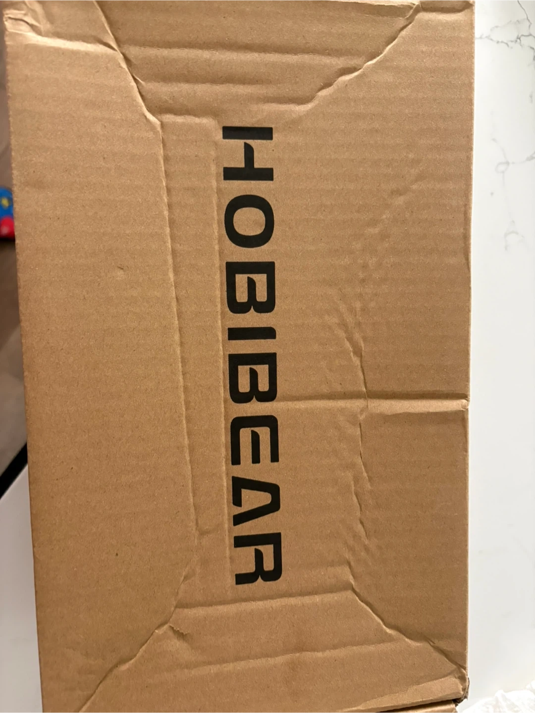 These are new HOBI BEAR men's shoes. Black colour with a white stripe and brown sole. Includes original box.
