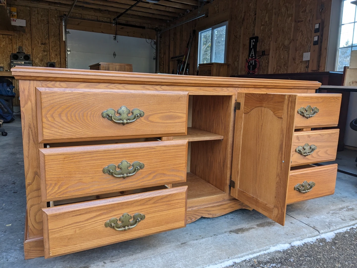 6 Drawer Dresser/Cabinet Combo in Solid Oak