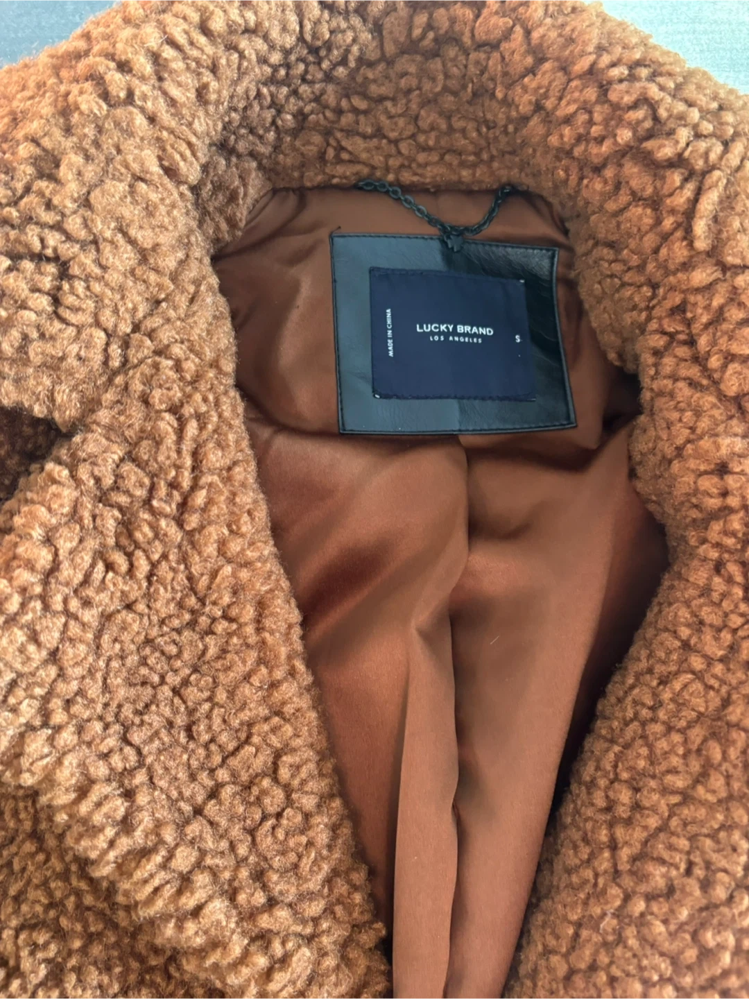 Women’s lucky brand brown Sherpa long coat -Small $55