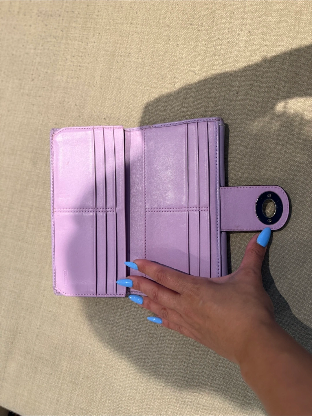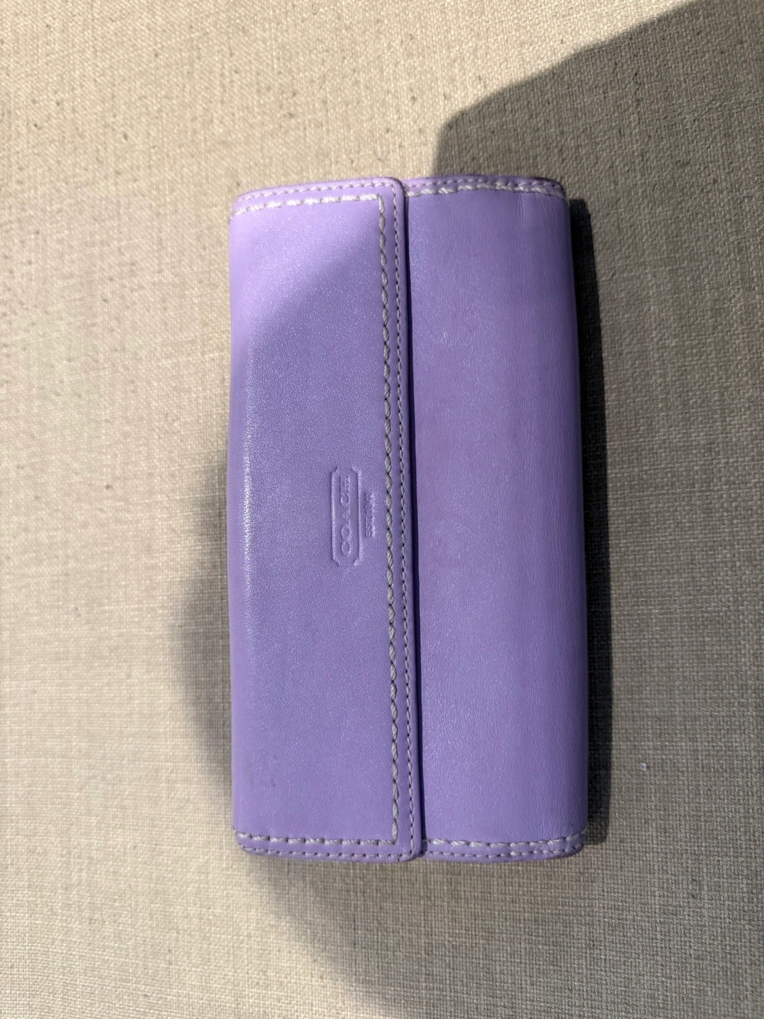 Here's a cute Coach wallet in a lovely shade of purple! It's in good condition and ready for a new home