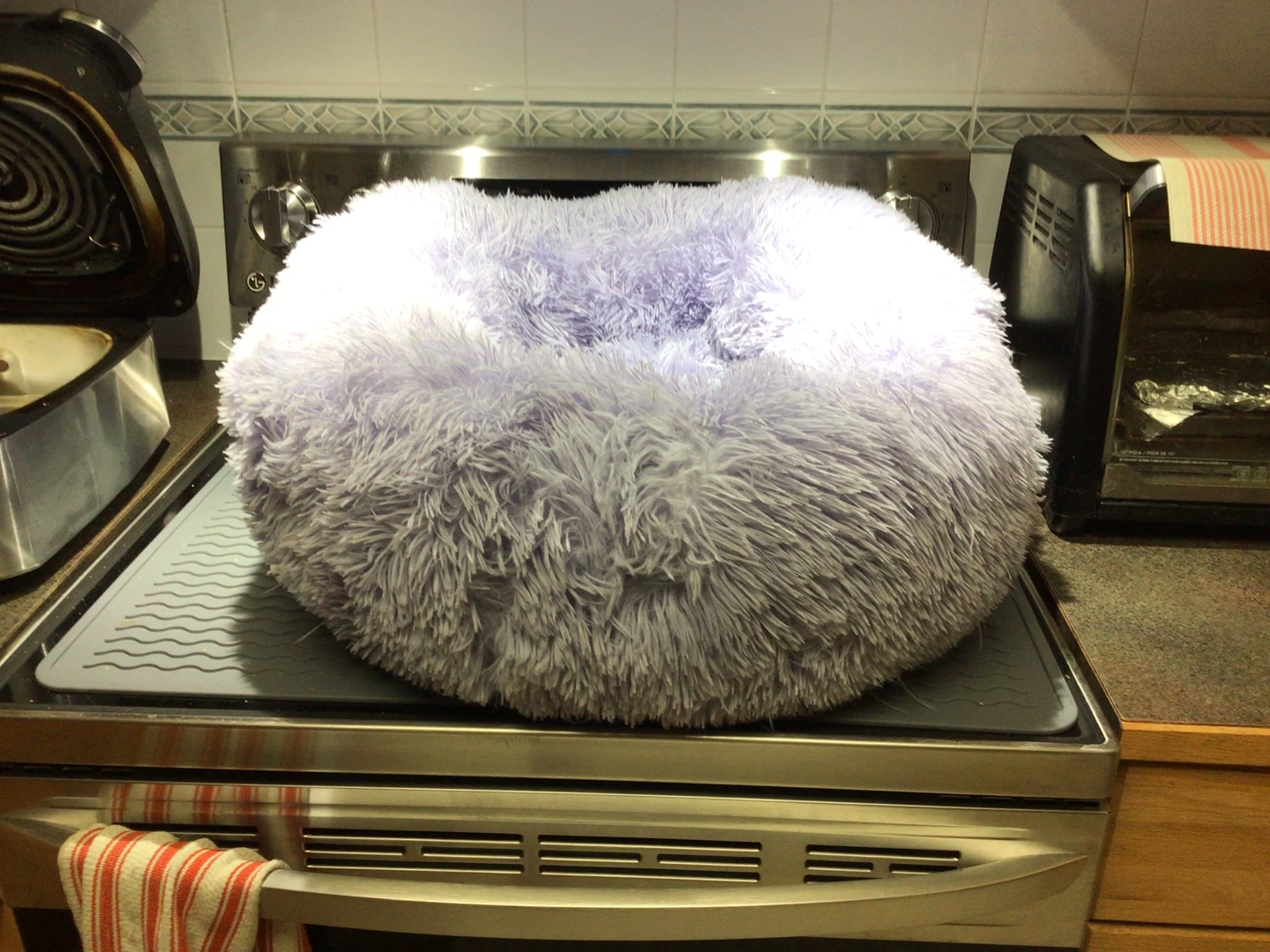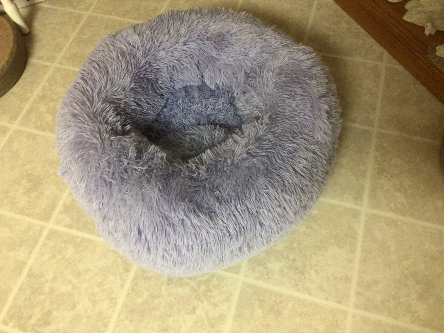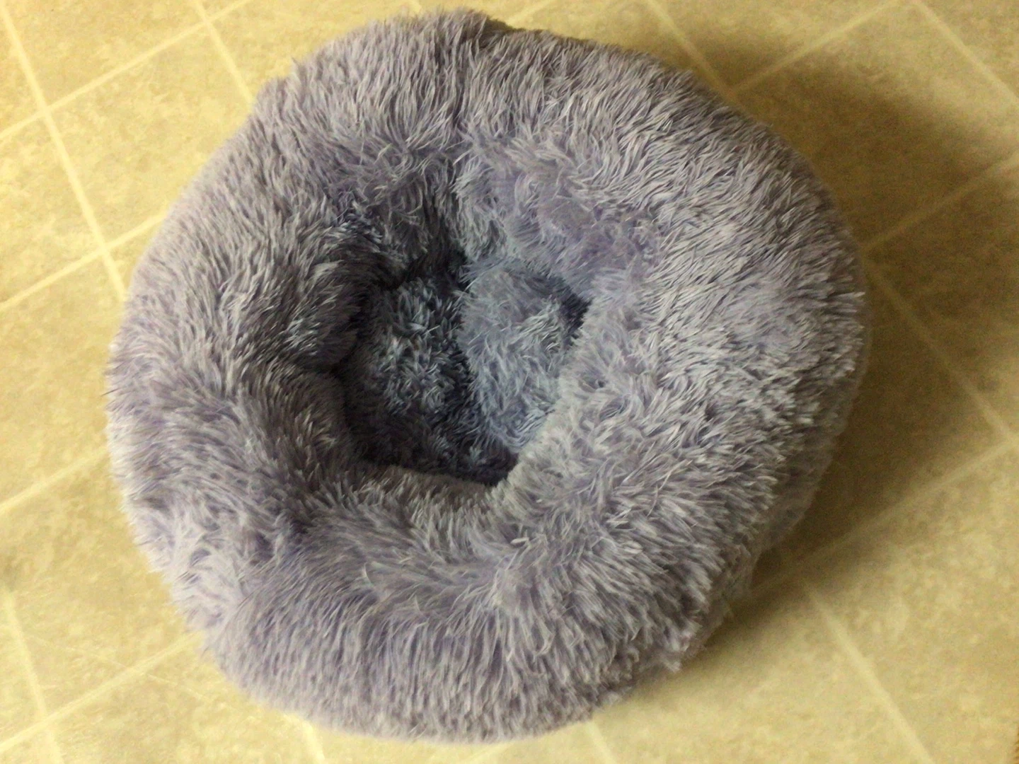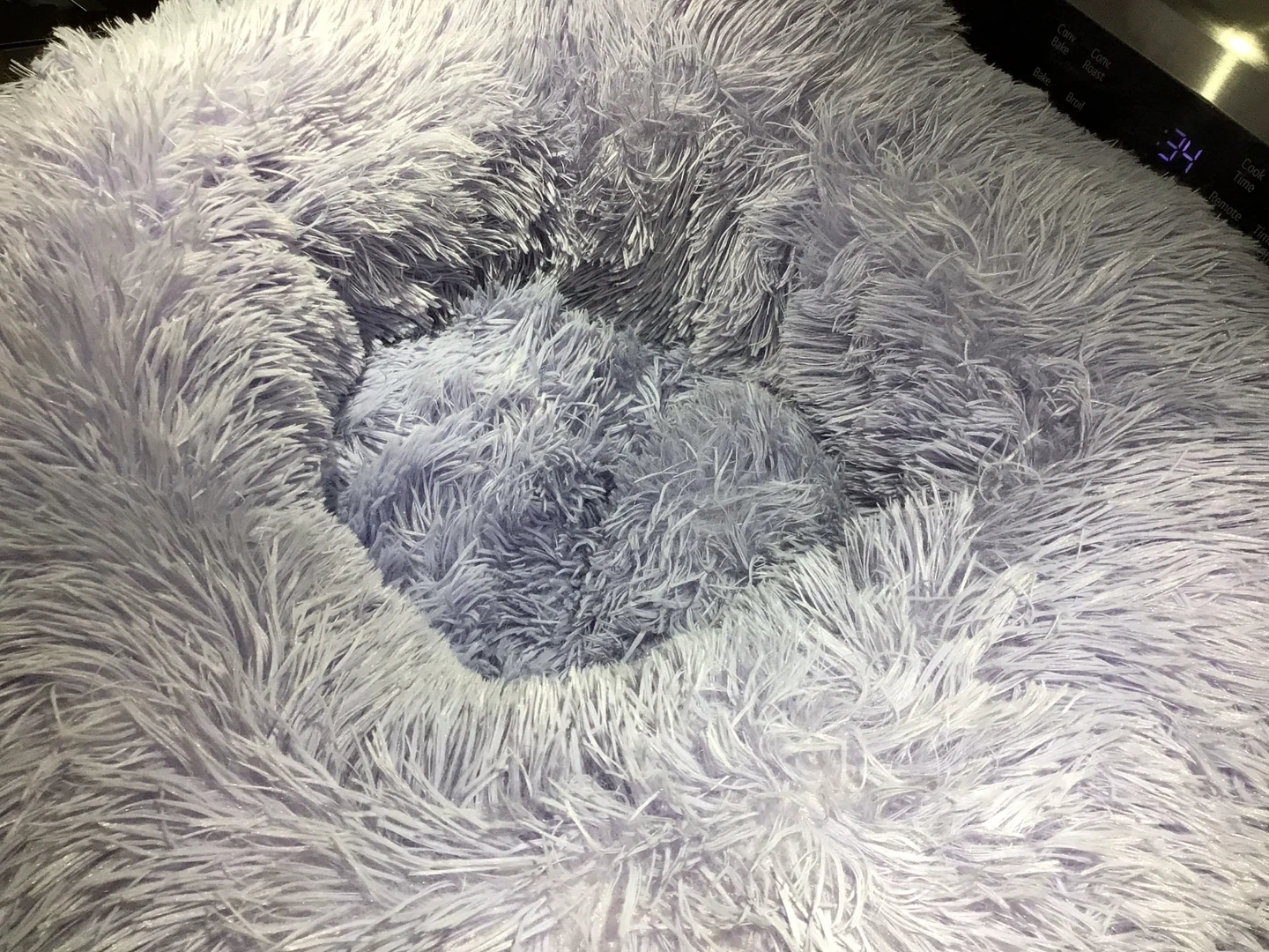 Super soft, round pet bed with plush, long-pile faux fur. It's a cozy spot for your furry friend to curl up. Made with a durable, easy-clean material. 24 inches