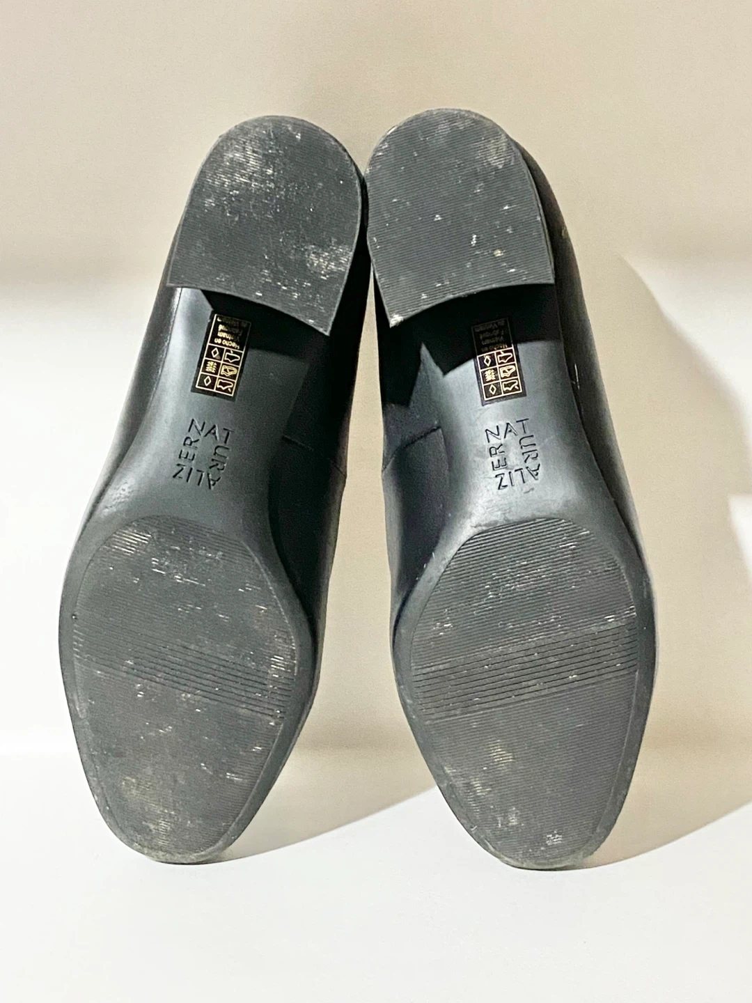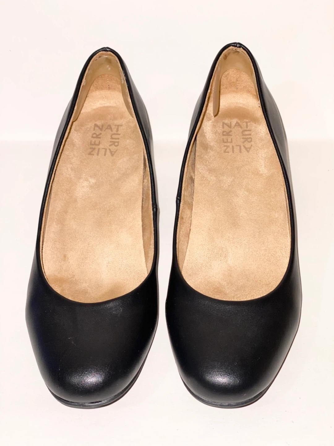 Naturalizer Black Leather Block Heel Pumps