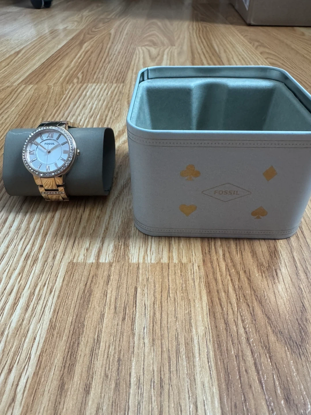 Selling a beautiful Fossil ladies' watch in rose gold tone. It comes with its original box. The watch has a lovely design, perfect for adding a touch of elegance to any outfit