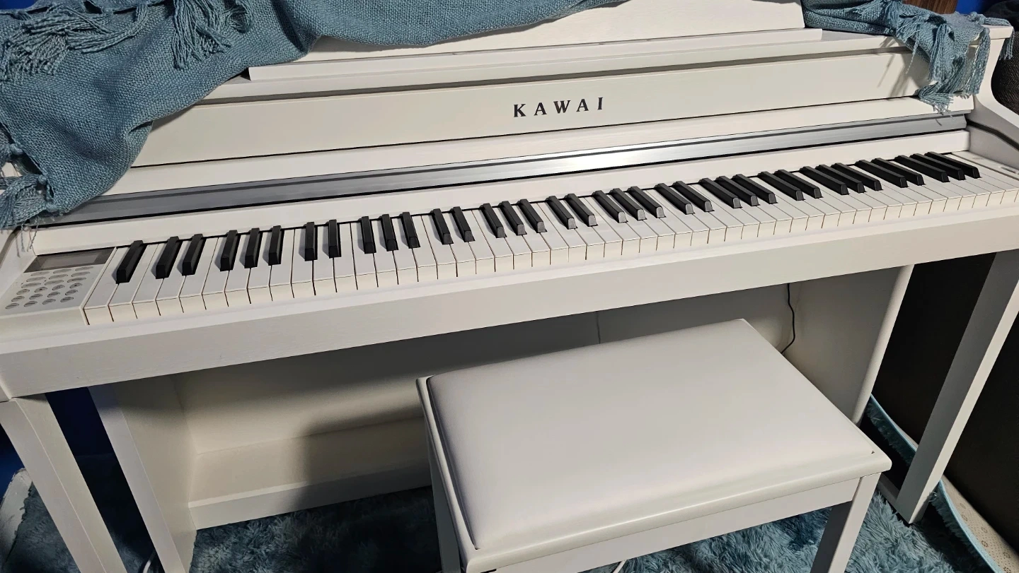 This is a Kawai CA501 digital piano in white. It includes a matching bench. Great for practice or performance!