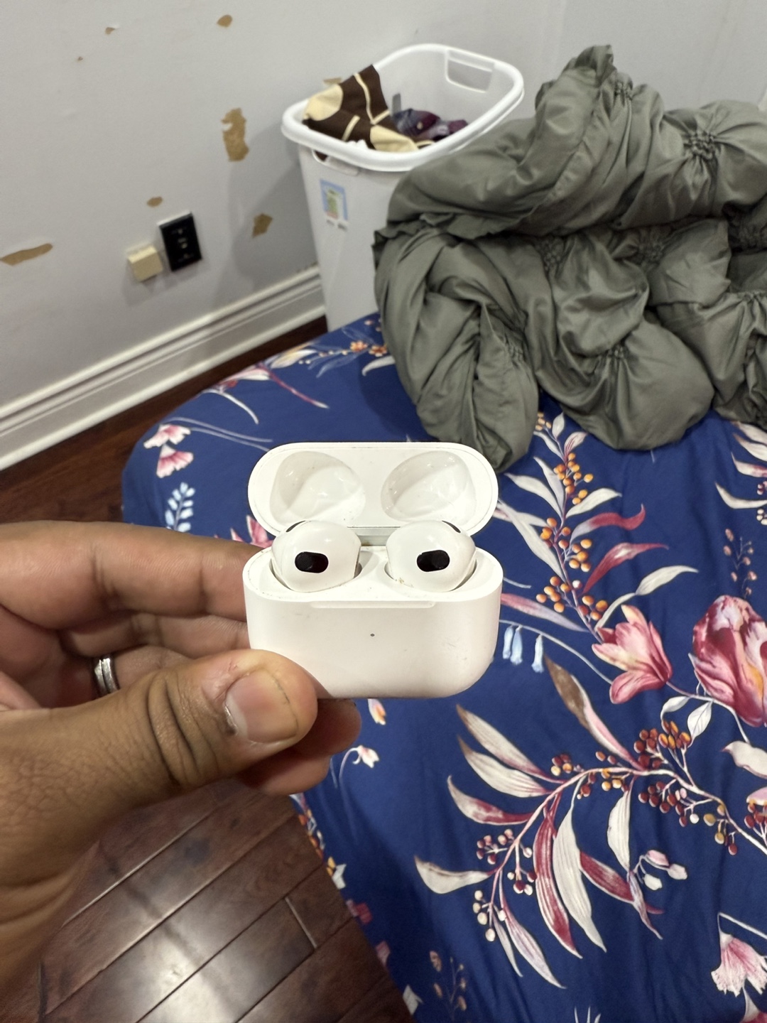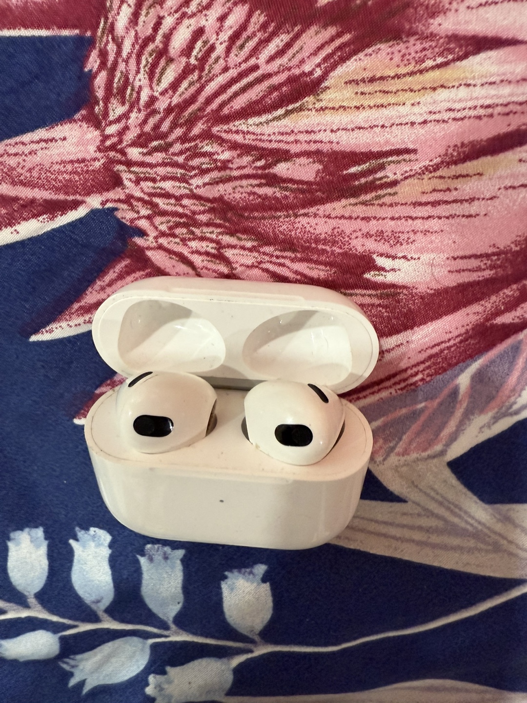 Buy & SellApple AirPods 3Apple AirPods 3$85Selling a pair of Apple AirPods 3 generation They are in good condition and come with the charging caseBrandAppleWHERE TO MEETCheck LocationView MapSELLERverifiedUmairMalvern853 reviews11 chats·6 favorites·197 viewsSEND CHAT TO SELLERHi Umair! I’m interested in your listing.Hi Umair! I’m interested in your listing.Get the Karrot app to chatSign In to chat