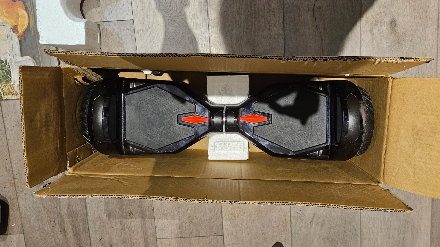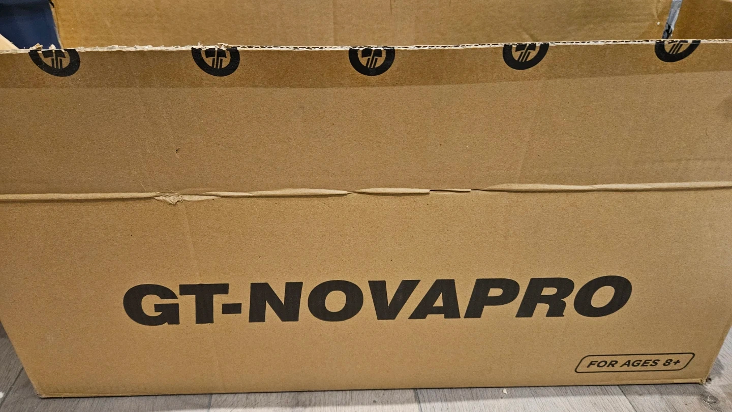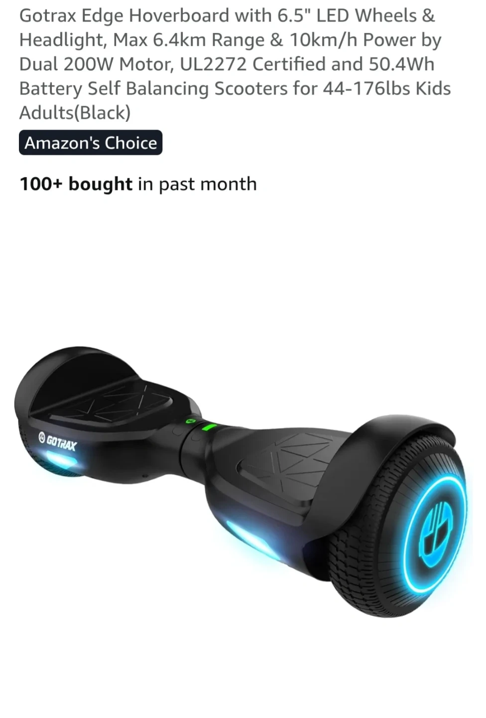 Gotrax GT-NOVAPRO hoverboard with 6.5" LED wheels. It's black and suitable for riders 44-176lbs. Includes original box with charger. For ages 8+. Pick up by March 21.