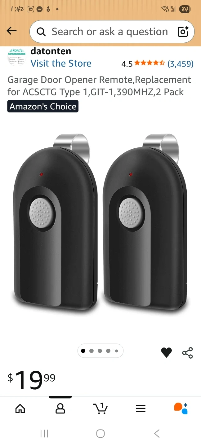 This is a 2-pack of datonten garage door opener remotes. They're compatible with Genie and Overhead Door garage openers operating at 390MHz. Includes 2 remotes, 2 batteries, and 2 visor clips. Operates up to 150 feet with no occlusion!