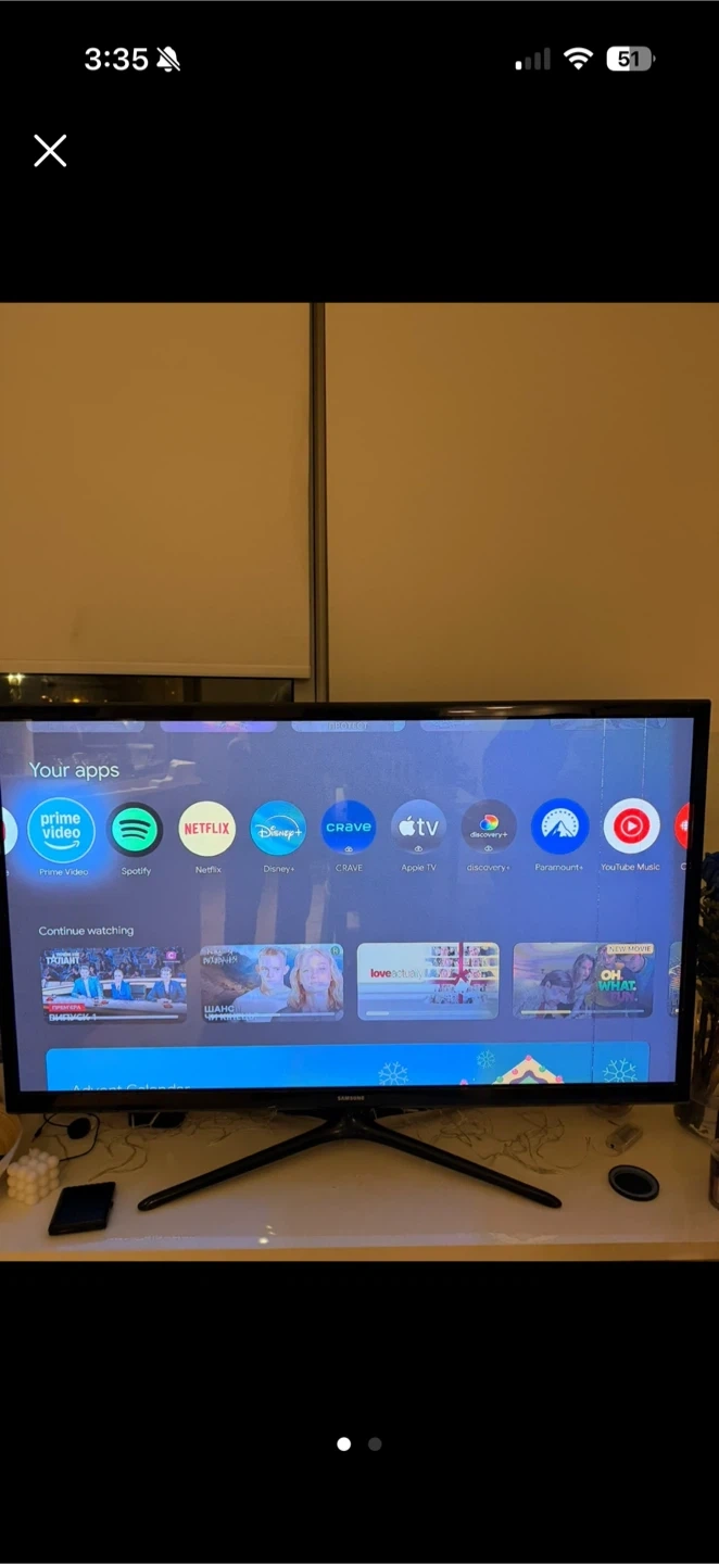 Selling a Samsung Smart TV with pre-installed streaming apps like Netflix, Prime Video, and Disney+. It's in great working condition, but it has 2 pixel lines. However it doesn’t affect the functionality of the TV .