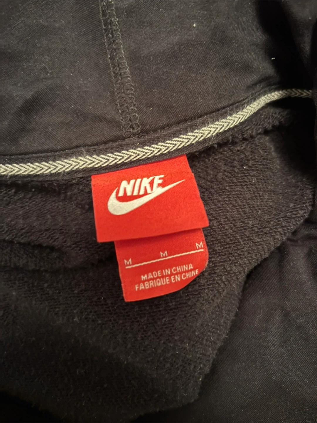 Black Nike hoodie. It's a size medium (fits like a large) with textured sleeves.