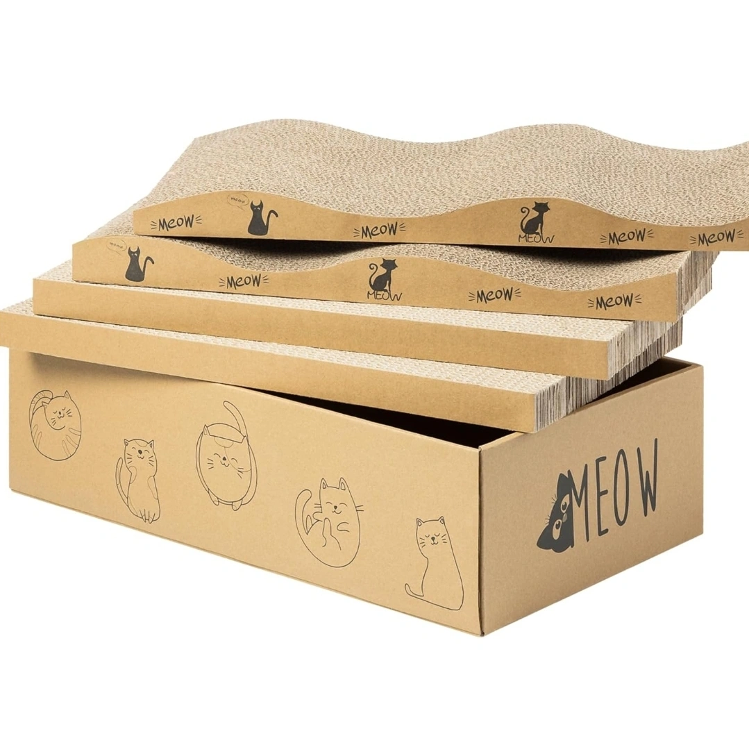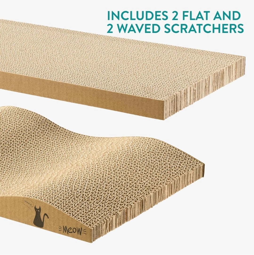 Treat your feline friend to the ultimate scratching experience with our 4-in-1 Cat Scratcher Set. Made from durable, thick corrugated cardboard, this set includes 2 flat and 2 waved scratch pads, offering a variety of textures to keep your cat engaged. Designed to protect your furniture while satisfying your cat's natural scratching instincts, these scratchers are double-sided for extended use.