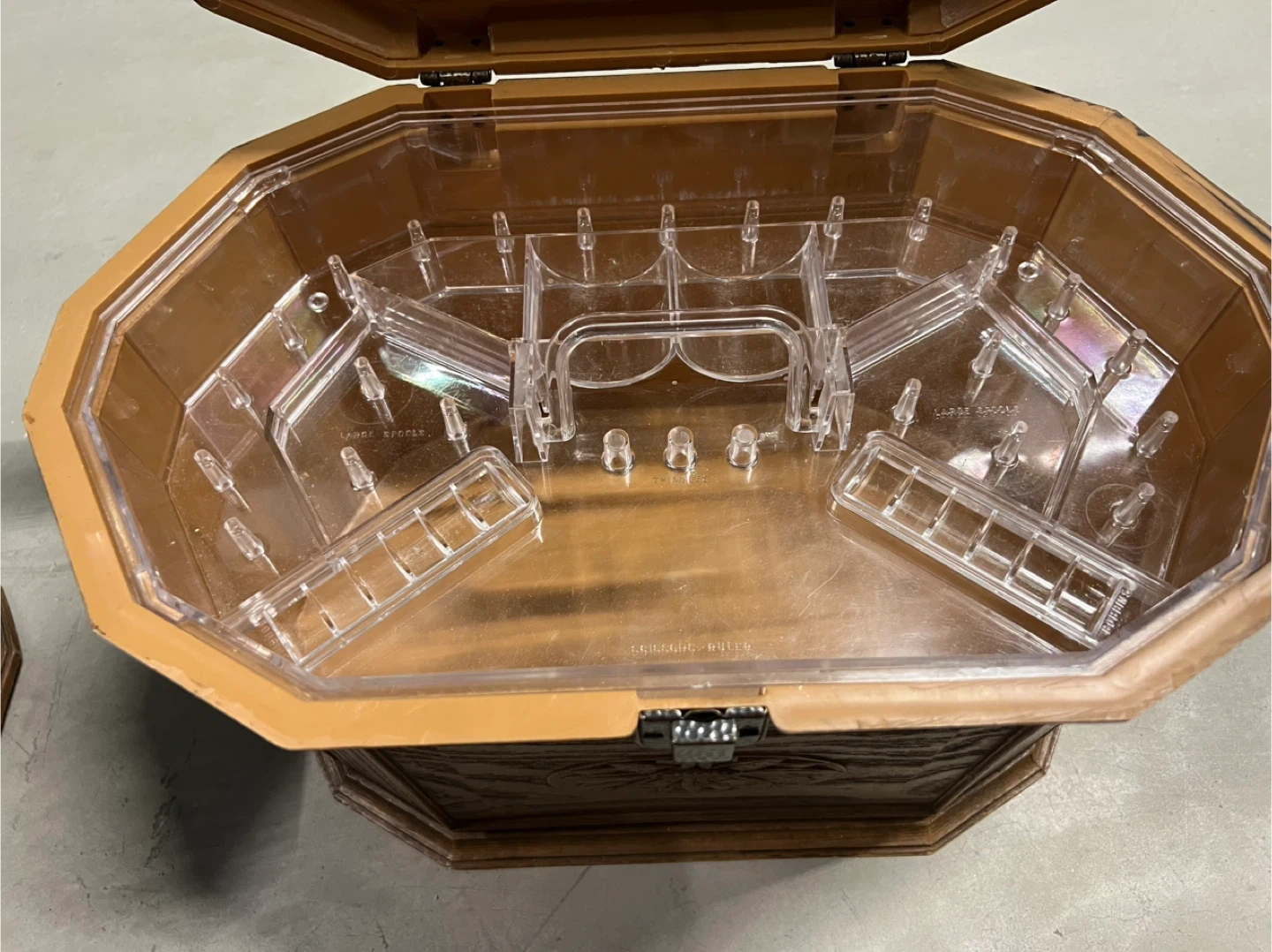 • Original Lerner Trays: Both include the rare, clear acrylic "see-through" organizational trays with spool pins. Trays are in great shape with no cracks.
