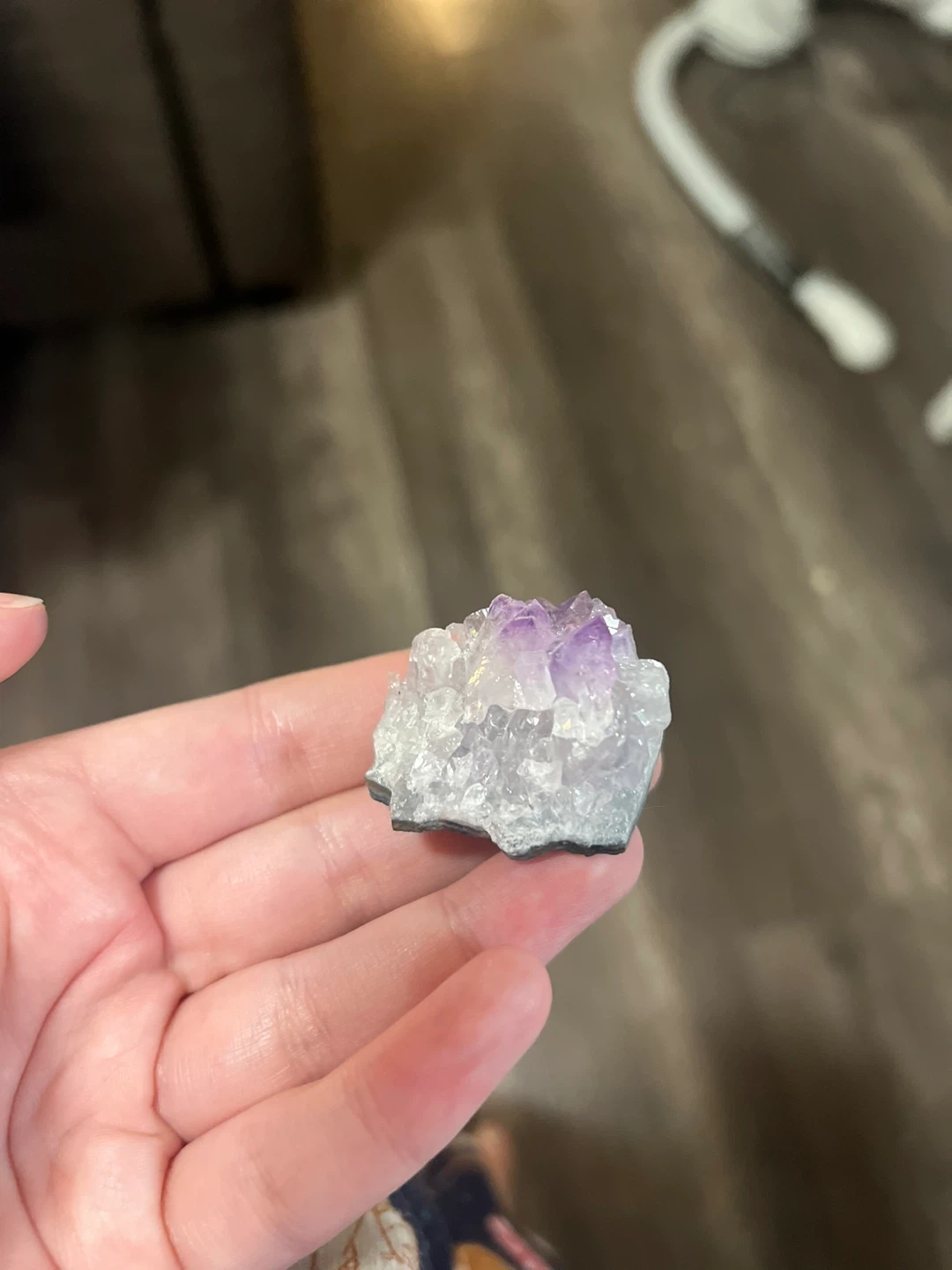 This is a raw amethyst crystal cluster with beautiful purple and clear facets. It's a natural mineral specimen. Perfect for adding a touch of natural beauty to any space!