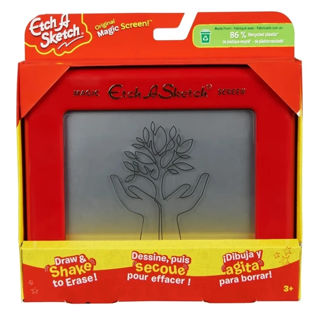 This is the classic Etch A Sketch Original Magic Screen, made with 86% recycled plastic. It's a creativity toy for kids ages 3 and up. Simply draw, then shake to erase your creation!
